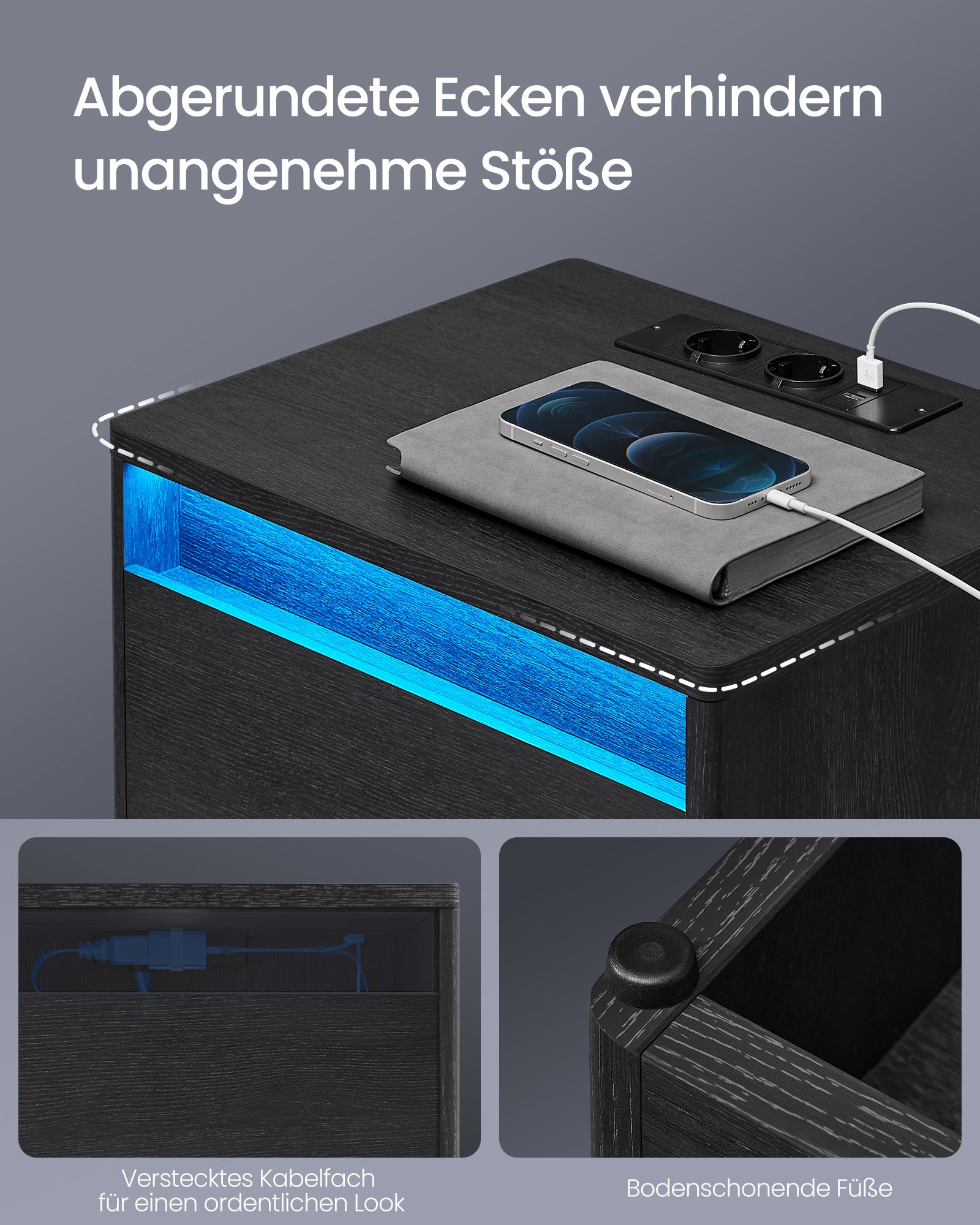 Naktinis staliukas su LED apšvietimu – Elegancija ir Funkcionalumas Jūsų Miegamajame