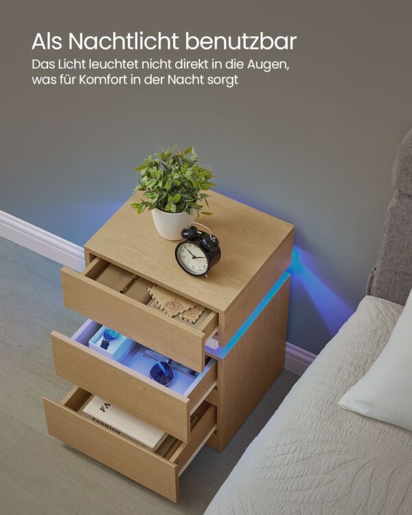 Šis naktinis staliukas su LED apšvietimu yra ne tik funkcionalus, bet ir stilingas sprendimas jūsų miegamajam. Jo šviesiai ruda spalva ir modernus dizainas puikiai derės prie įvairių interjero stilių, o LED apšvietimas suteiks papildomo žavesio ir jaukumo jūsų erdvei.