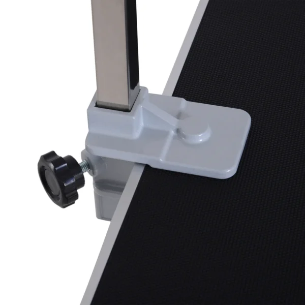 • Reguliuojamas laikiklis: kirpimo ranka gali būti pakelta iki 63 cm virš stalviršio, kad tilptų įvairaus dydžio šunys. Pridedamas pavadėlis užtikrina, kad jūsų augintiniai būtų saugūs, kol juos maudysite, džiovinate, šukuojate, pjaunate ir karpote.