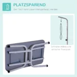 • Taupai vietos: sulankstomos metalinės kojelės leidžia stalą pastatyti ir išardyti per kelias minutes. Patogus transportuoti iš vienos vietos į kitą.