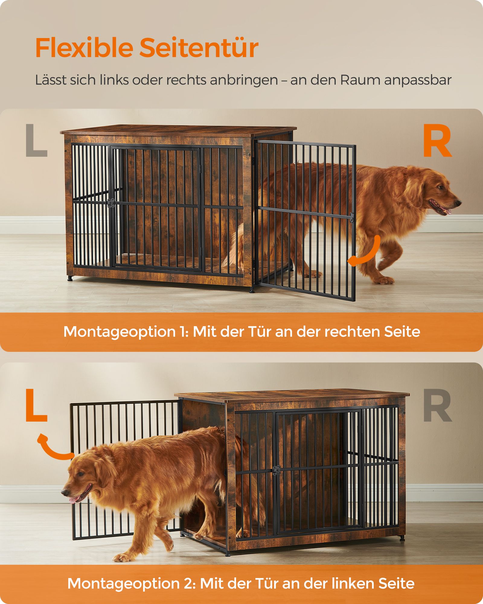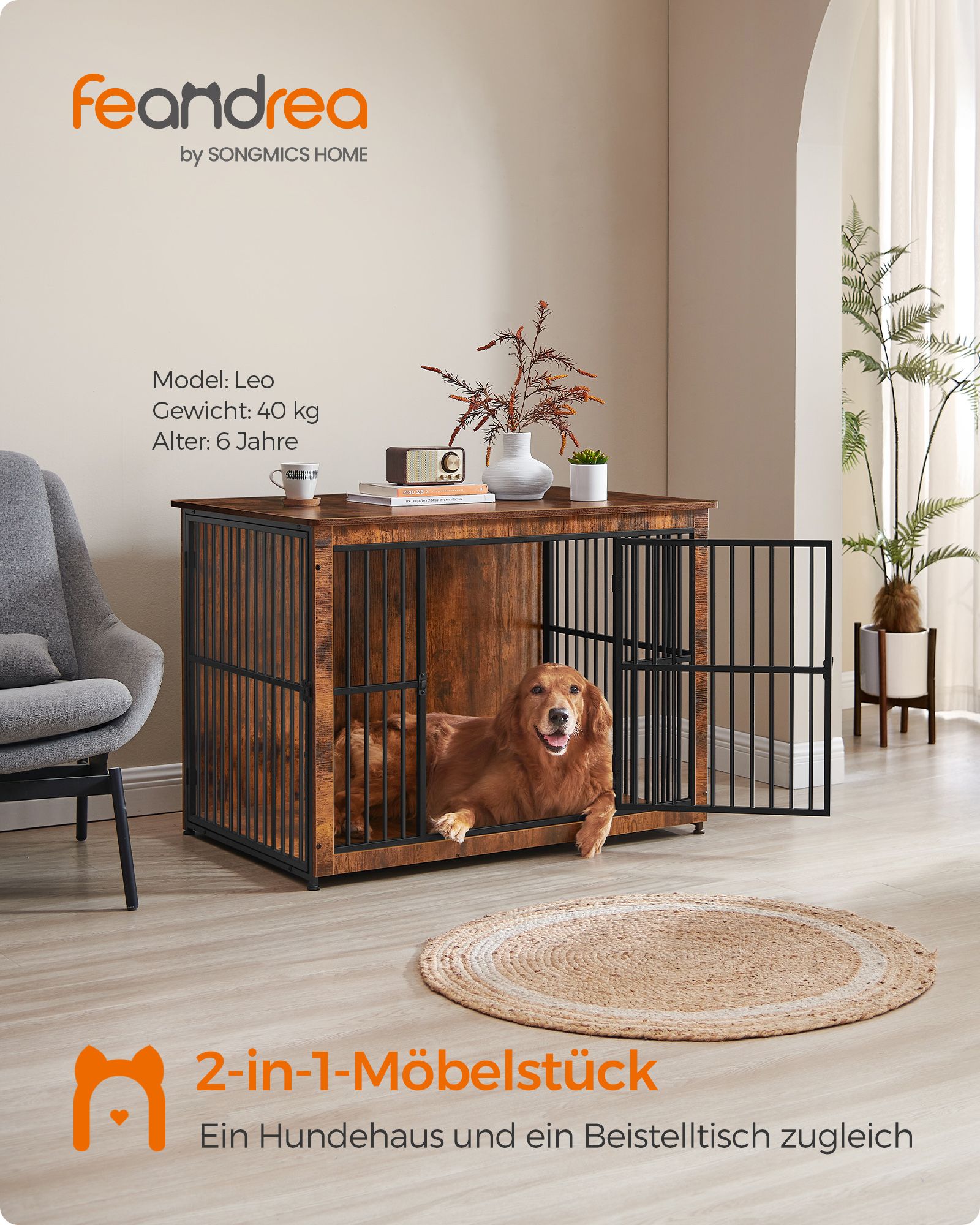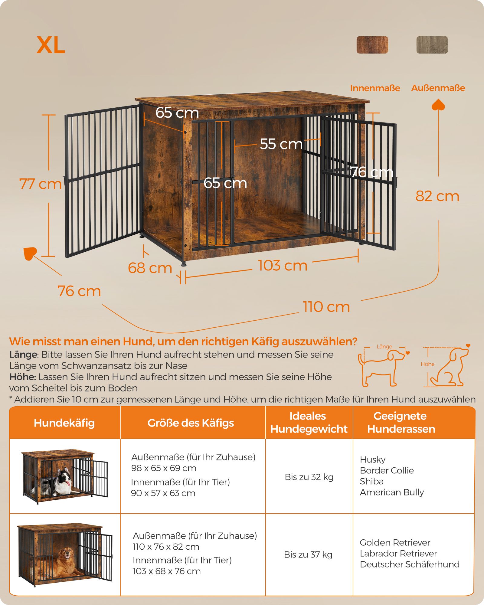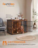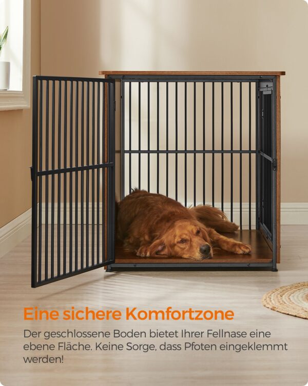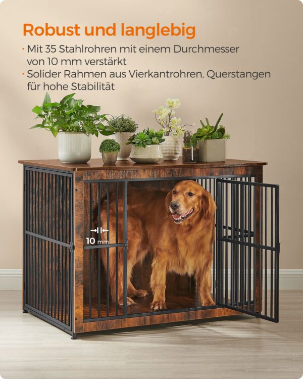 Ieškote patikimo ir estetiško sprendimo savo augintinio saugumui ir komfortui? Mūsų narvas šunims, kurio matmenys yra 110x76x82 cm, yra puikus pasirinkimas. Šis narvas ne tik užtikrina jūsų šuns saugumą, bet ir puikiai dera prie jūsų namų interjero, dėka savo vintažinės rudos ir juodos spalvų derinio.