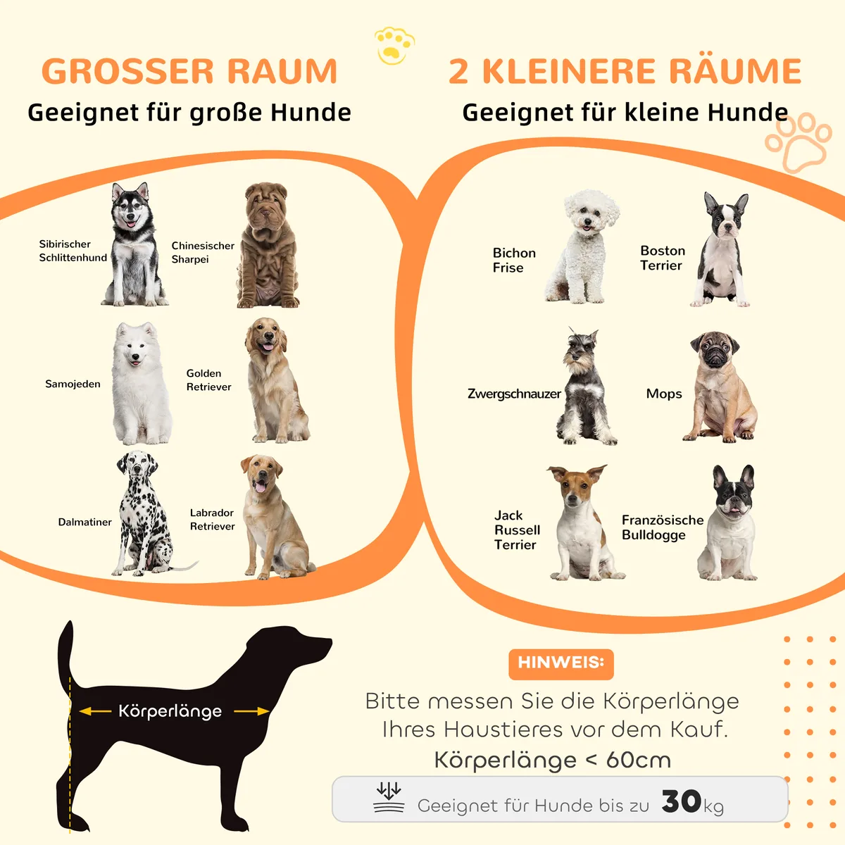 - ✔ Dviejų kambarių variantas šunims iki 35 cm ir 8 kg.