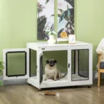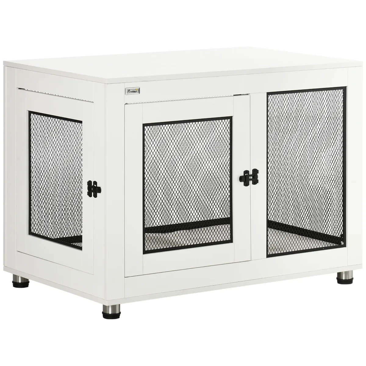 Šis dekoratyvinis šunų narvas iš „PawHut“ suteikia jūsų mažyliams aukšto lygio miego komfortą dėl švelnaus minkšto kilimėlio, kurio dangtelį galima lengvai nuimti ir išvalyti skalbimo mašinoje. Dvi rakinamos šunų namelio durys ir plonas plieninis tinklelis neleidžia šuniukams pabėgti ir patekti į pavojingą situaciją. Tai reiškia, kad jūsų šuniukai gali augti sveiki ir sveiki.