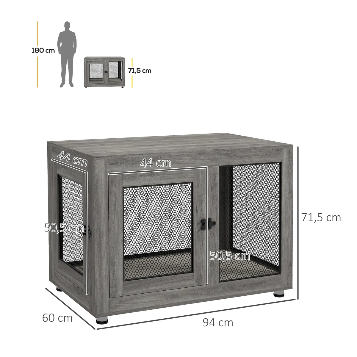 Atraskite puikų stiliaus ir funkcionalumo derinį su mūsų dekoratyviniu šunų narvu. Jūsų keturkojis draugas džiaugsis minkštos miegojimo pagalvės su nuimamu, plaunamu užvalkalu komfortu. Dvejos durys leidžia lengvai pasiekti, o viršutinėje lentynoje yra pakankamai vietos augintinių reikmenims. Tvirta šunų narvo konstrukcija garantuoja patvarumą ir sklandžiai įsilieja į jūsų atmosferą, kol jūsų šuo mėgaujasi jaukia, nauja vieta ilsėtis.
