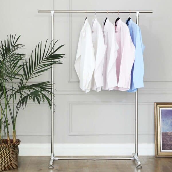 Paruoštas drabužių bėgelis netvarkingoms drabužių krūvoms: Ieškote protingo sprendimo, kaip išspręsti netvarkingų drabužių krūvas? Puiku, jūs jį radote dabar! Ši stilinga drabužių kabykla suteikia daug vietos kasdieniams drabužiams ir užima mažai vietos.