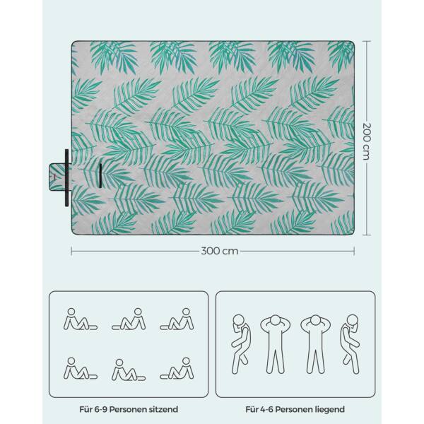 Nešiojama pikniko antklodė 300 x 200 cm yra puikus pasirinkimas lauko pramogoms. Ši antklodė yra lengva ir kompaktiška, todėl ją lengva nešiotis ir laikyti.
