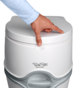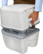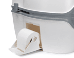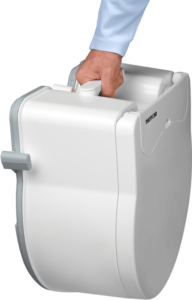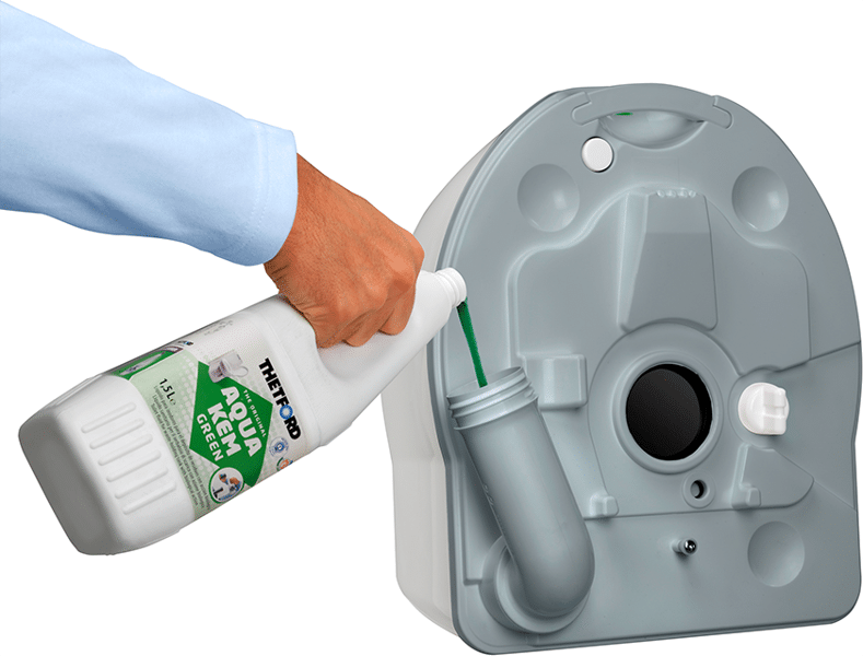 Nuvežimas į turistinį tualetą „Excellence“, kuriame yra elektrinis vandens nuleidimo siurblys, atliekų bako lygio indikatoriai ir vandens nuleidimo bakelis. Puikiai tinka tose vietose, kur negalima išvesti kanalizacijos sistemos. Jį sudaro dvi dalys: viršutinė dalis yra nuleidimo vandens bakelis, prijungtas prie unitazo. Apatinė dalis yra atliekų bakas, prijungtas prie nutekėjimo vamzdžio, kuris garantuoja lengvą ir higienišką išmatų išpylimą – Lengvas abiejų dalių surinkimas, naudojant atrakinimo mygtuką tualeto gale – Piltuvėlis, kuriuo į atliekų baką lengvai įpilsite reikiamą skysčio kiekį. – Skalavimo vandenį galima pilti tiesiai į viršutinį baką – Užpildymas atliekų rezervuaro lygio indikatorius, informuoja, kada jį reikia ištuštinti ‡ – Cisternos užpildymo lygio indikatorius – Praktiškas popieriaus skyrius, užtikrinantis higieną ir lengvą prieigą -Lengva kasetė su rankena išmatoms, lengva transportuoti -Unikalus, integruotas pasukamas išleidimo vamzdis, leidžia lengvai ištuštinti baką. Nereikia ardyti ar valyti atskirų dalių. Bunkerio apačioje esantis išleidimo mygtukas apsaugo nuo purslų ištuštinant. Atliekų rezervuare esantis ribotuvas išlaiko nutekėjimo vamzdį, kad du bakai galėtų tiesiog užsidaryti – Greitai nuplaukite su elektrinis siurblys – vienas paspaudimas slėgiui sumažinti, patogus ir paprastas naudoti, efektyvaus skalavimo garantija. Šešios 1,5 V AA baterijos, kurių pakanka nuo 500 iki 700 nuplovimų – Galimybė pritvirtinti prie grindų, naudojant tvirtinimo pagrindą po tualetu Excellence (nepridedama) – Išmatų bakas su 21L talpa – 15L švaraus vandens bakas Mūsų patarimai Kad sumažintumėte žalos, nusidėvėjimo ar problemų ištuštinant atliekų baką riziką, rekomenduojame naudoti tualeto priežiūros priemones. Šie priedai padeda išvengti kvapų ir dujų susidarymo bei palaiko apatinio bako vidų švarų. Naudodami Thetford Portable TOILET kartu su priežiūros produktais padidinsite higieną ir naudojimo komfortą, o baką galima ištuštinti tik kartą per keturias dienas!