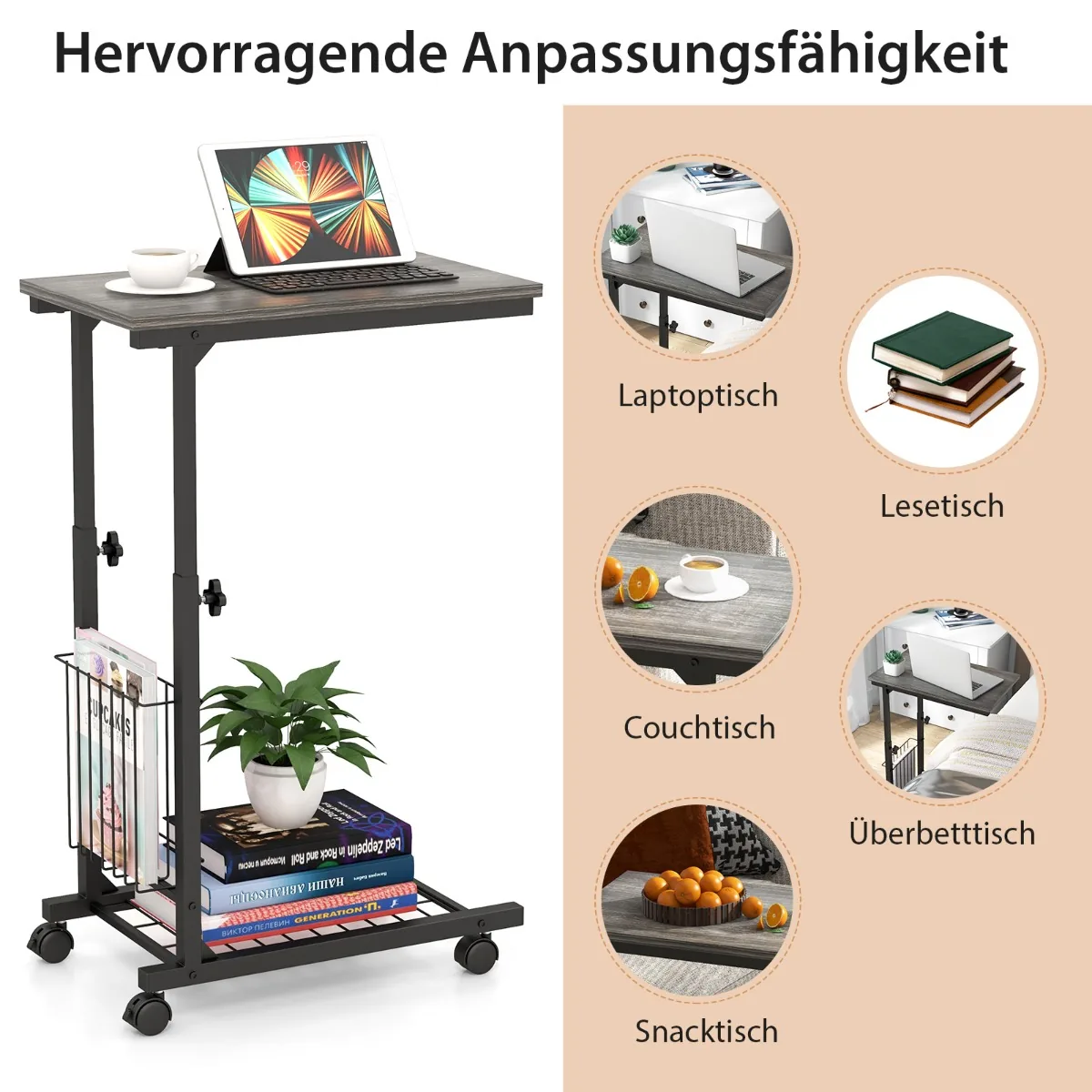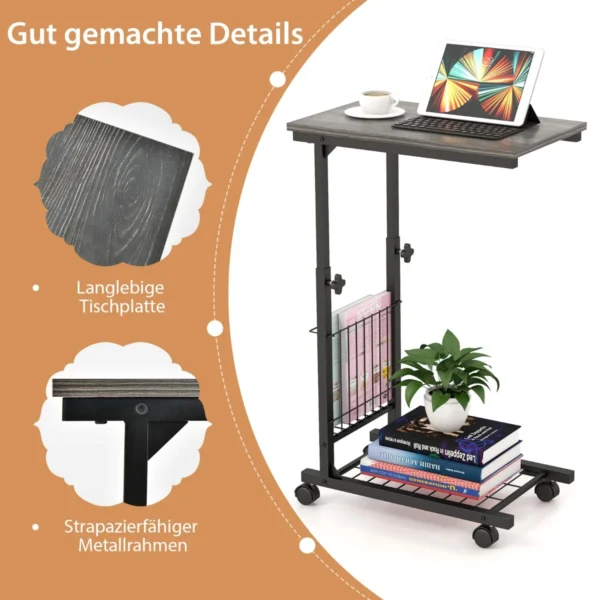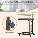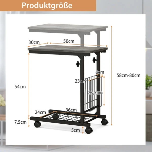 Nešiojamojo kompiuterio stalas 50x30x80cm pilkos ir juodos spalvos – funkcionalus sprendimas dirbti ar mokytis namuose ir biure. C formos konstrukcija leidžia patogiai naudoti stalą tiek šalia lovos, tiek sofos, o reguliuojamas aukštis užtikrina komfortą įvairioms veikloms.