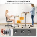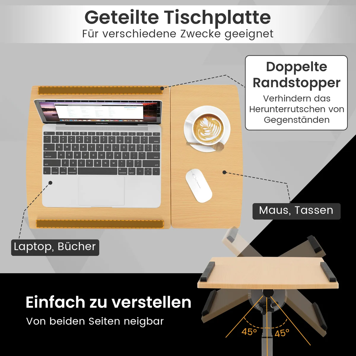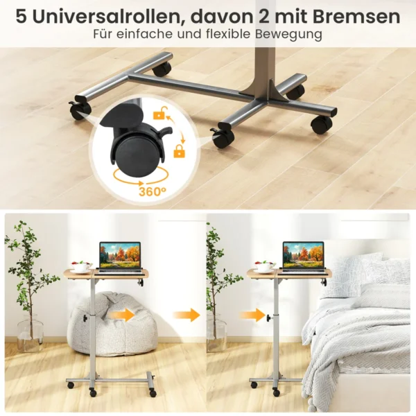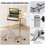 Nešiojamojo kompiuterio stalas 60x40x91,5 cm šviesiai rudos ir pilkos spalvos – praktiškas sprendimas mobiliai darbo vietai namuose ar biure. Reguliuojamo aukščio ir kampo darbo paviršius suteikia patogumą įvairioms veikloms.