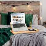 Šis elegantiškas ir funkcionalus nešiojamojo kompiuterio staliukas yra puikus pasirinkimas tiems, kurie vertina patogumą ir stilių. Jo kompaktiškas dydis ir šviesiai ruda spalva puikiai dera prie bet kokio interjero, suteikdami jūsų darbo erdvei modernumo ir jaukumo.