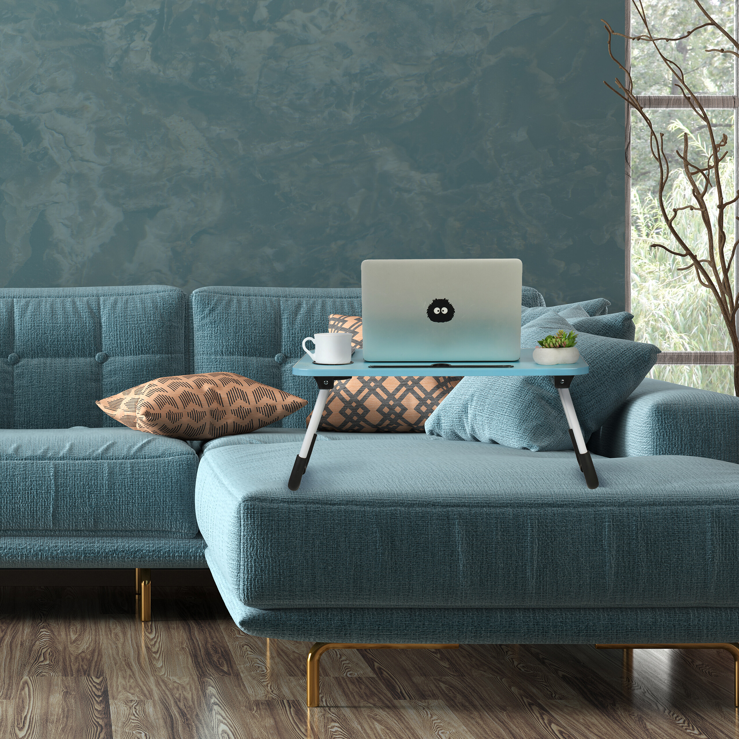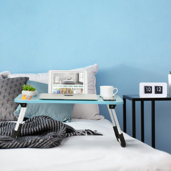 Nešiojamojo kompiuterio staliukas 26x63x40cm., šviesiai mėlynos/baltos/juodos spalvos