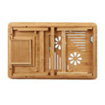 Patirkite komfortą ir produktyvumą su mūsų elegantišku ir funkcionaliu nešiojamojo kompiuterio staliuku, pagamintu iš natūralaus bambuko. Šis staliukas yra puikus sprendimas tiems, kurie nori dirbti ar pramogauti patogiai gulėdami ant sofos ar lovoje.