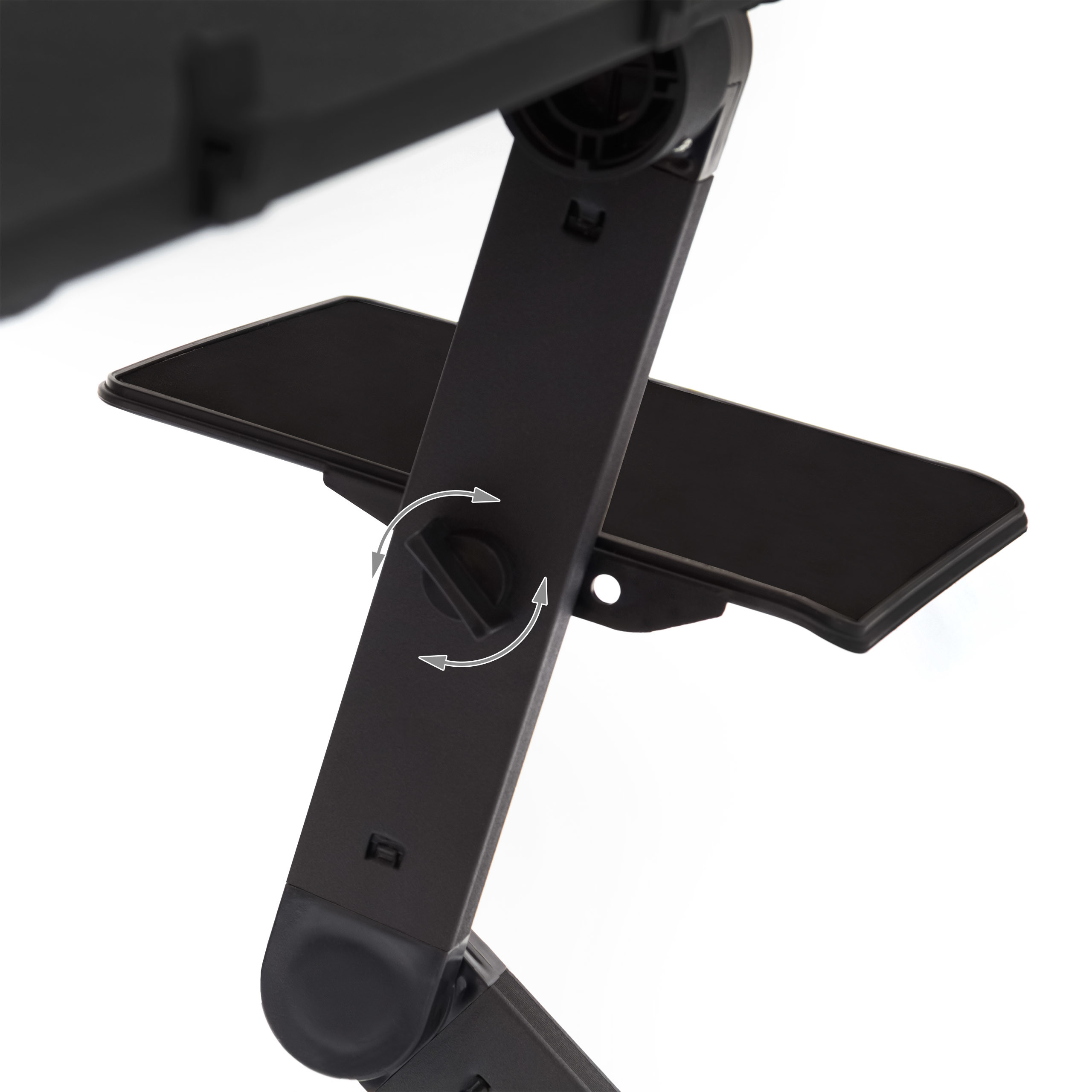 - Stabilumas ir Saugumas: Staliukas yra su neslystančia lentyna, užtikrinančia jūsų nešiojamojo kompiuterio stabilumą ir saugumą.