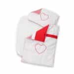 Tvirtas medinis raudonos spalvos lėlių vežimėlis. Puikiai tinka kiekvienai mergaitei. Pridedamas mažos patalynės rinkinys vežimėliui.