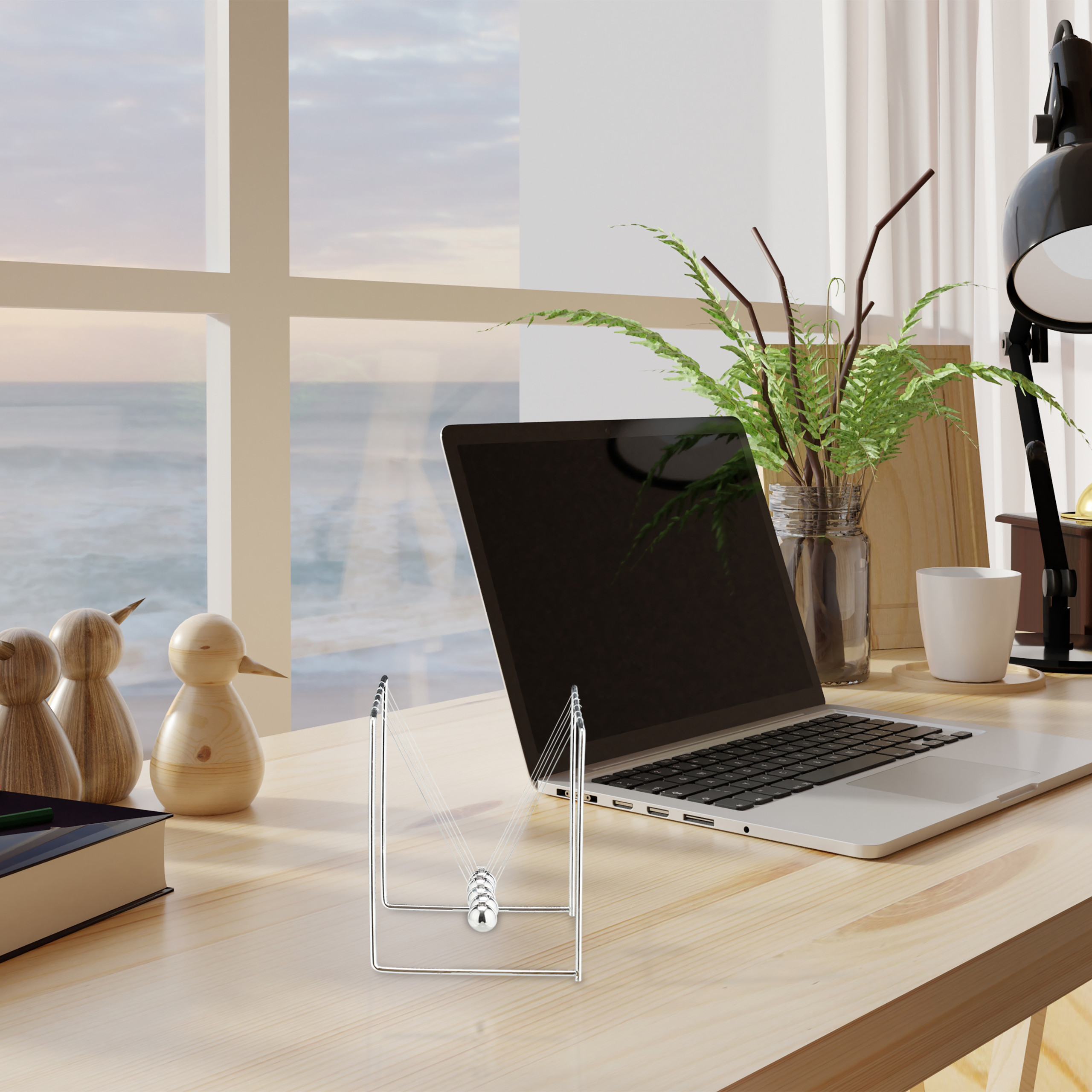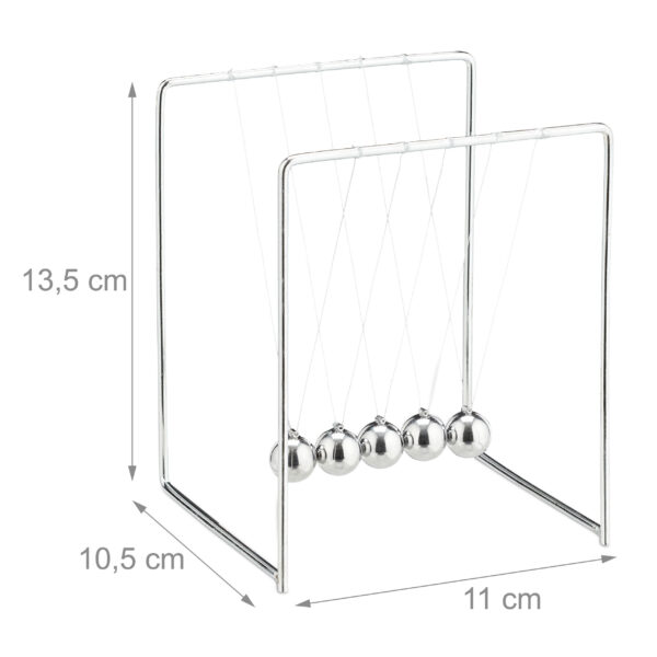 Įneškite elegancijos ir mokslo dvelksmą į savo darbo erdvę su šiais subtiliais Niutono lopšio švytuokliniais rutuliais. Šis klasikinis stalo dekoratyvinis elementas ne tik puošia, bet ir intriguoja savo veikimo principu, kuris žaismingai paaiškina impulso išsaugojimo dėsnį.