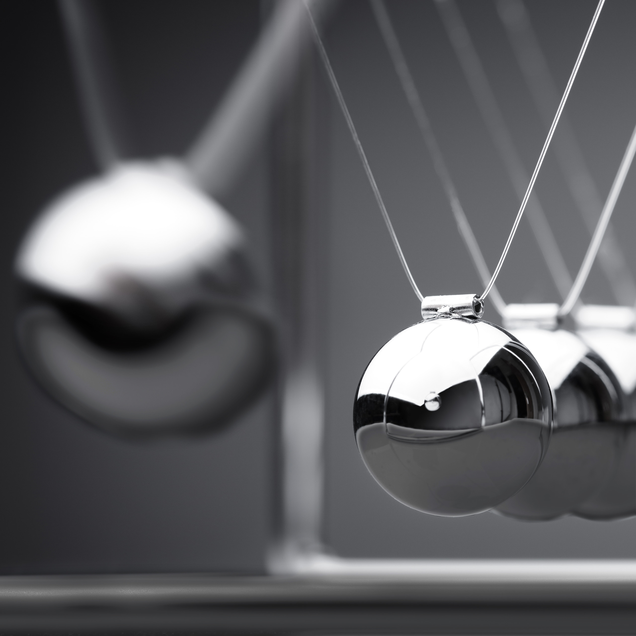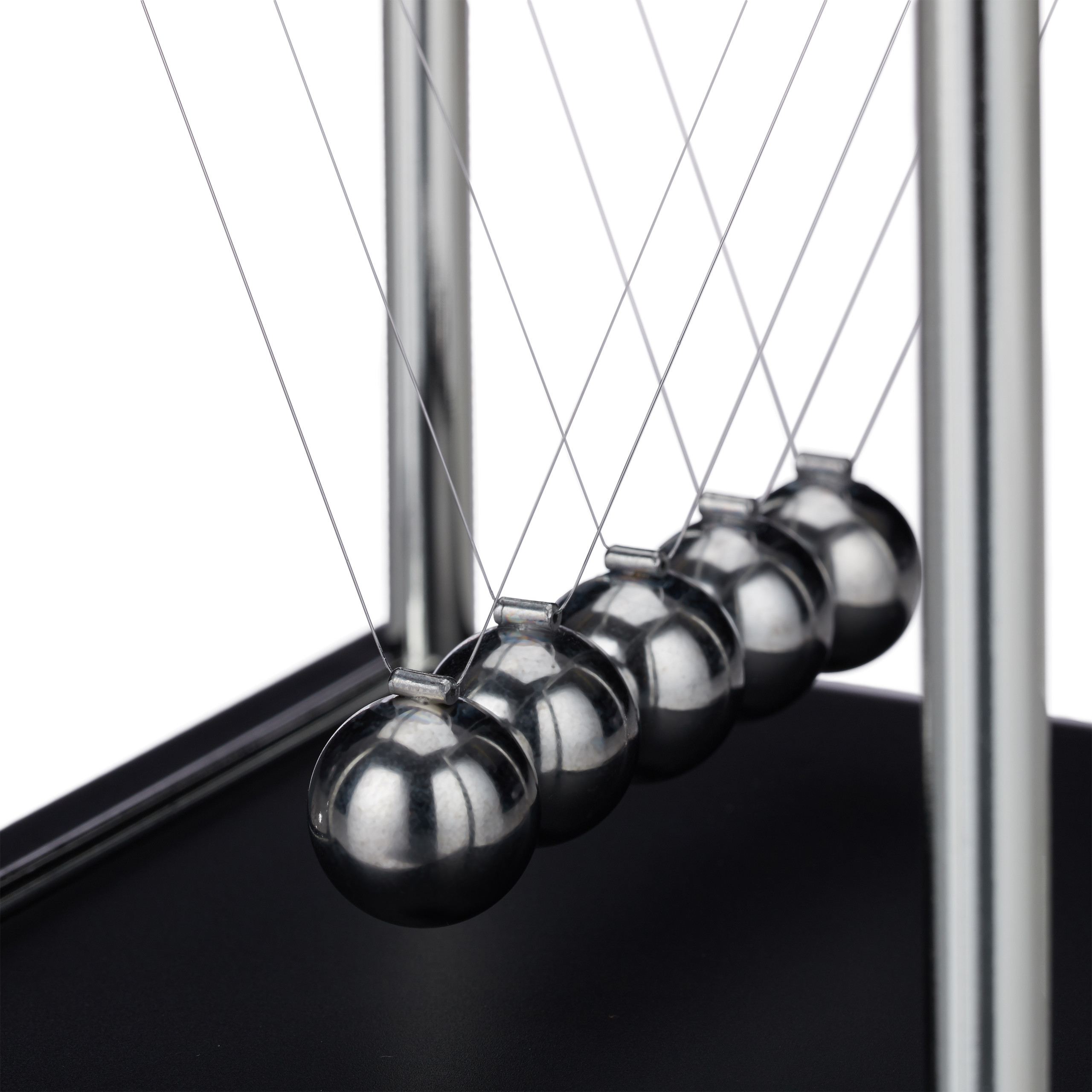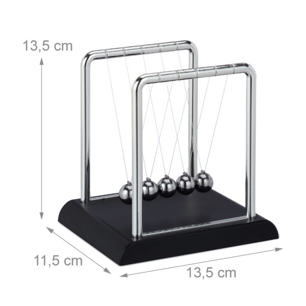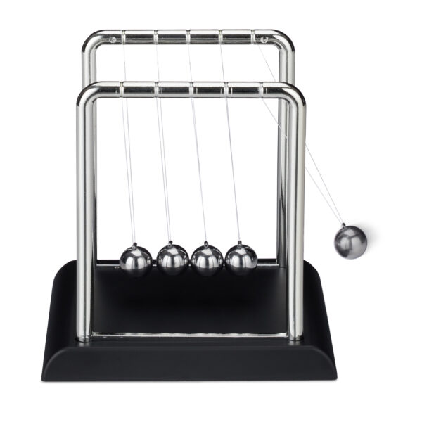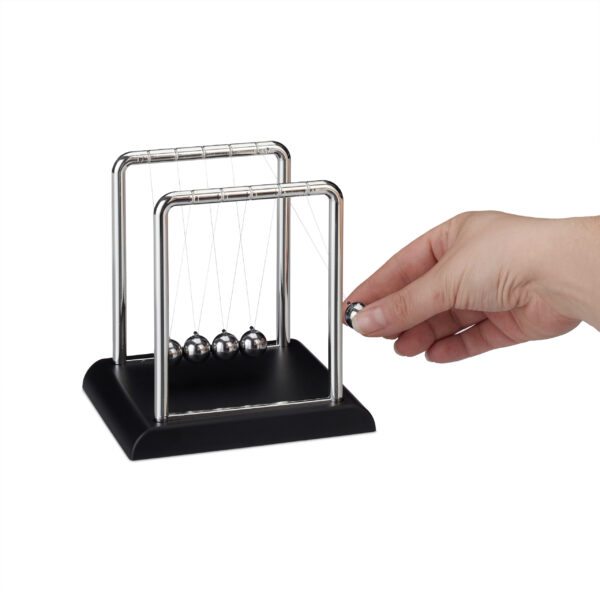 Niutono švytuoklė yra ne tik klasikinis dekoratyvinis objektas, bet ir suteikia įdomių įžvalgų apie fiziką ir impulso išsaugojimo dėsnį. Tiesiog nukreipkite vieną ar kelis išorinius rutulius ir leiskite jiems susidurti su stovinčiais kamuoliukais – tiek pat kamuoliukų vibruos priešingoje pusėje, demonstruodami energijos perdavimą ir išsaugojimą.