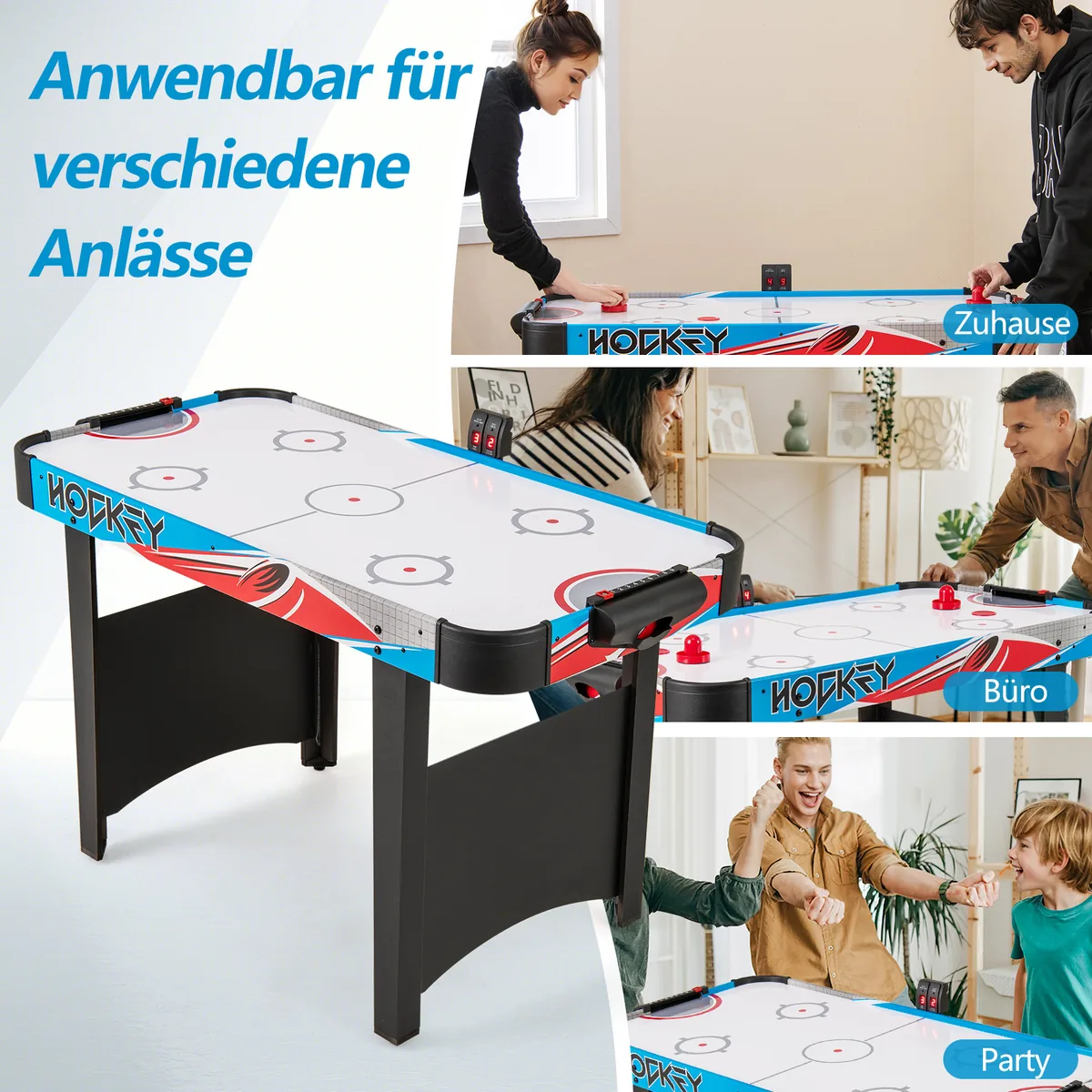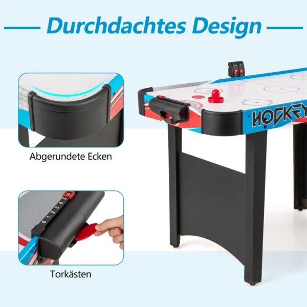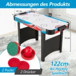 Oro ritulio stalas 122x61x76cm, įvairių spalvų, skirtas tiek suaugusiems, tiek vaikams žaisti namuose, biure ar žaidimų kambaryje. Stalas aprūpintas LED rezultatų suvestine ir galingu 12 V ventiliatoriaus varikliu, užtikrinančiu sklandų žaidimą. Reguliuojamos pėdų pagalvėlės ir užapvalinti kampai didina saugumą bei stabilumą.