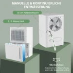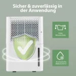 Oro sausintuvas 27×20,5×40,5 cm baltos spalvos skiriamas efektyviam patalpų drėgmės reguliavimui namuose ar biure. Su 12 litrų dienos drėgmės šalinimo pajėgumu ir reguliuojamu drėgmės diapazonu šis prietaisas užtikrina komfortišką aplinką iki 15 m² patalpose.