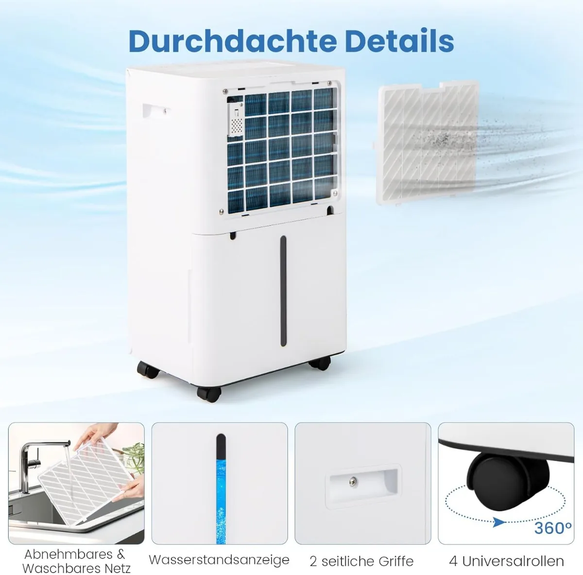 Oro sausintuvas 30,5×23,5×49,5 cm baltos spalvos skirtas efektyviam patalpų drėgmės reguliavimui iki 25 m² ploto. Šis 25,5 l oro sausintuvas tinka tiek namų, tiek rūsių naudojimui, užtikrinant komfortą ir apsaugą nuo perteklinės drėgmės.