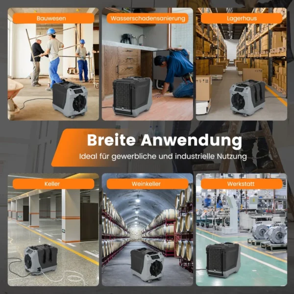 Oro sausintuvas 57x34x47cm, pilkos ir juodos spalvos, skirtas efektyviai šalinti drėgmę komercinėse ir pramoninėse patalpose. Idealiai tinka rūsiams, šliaužimo erdvėms, sandėliams ir kitoms iki 40 m² apimties vietoms. Įmontuotas siurblys ir išleidimo žarna leidžia patogiai nuvesti kondensatą be papildomų rūpesčių.