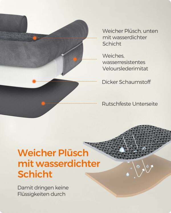 Pagaminta iš aukštos kokybės pliušo su TPU danga, zomšos imitacijos su PU danga ir PP paminkštinimo, ši lova yra ne tik patogi, bet ir ilgaamžė. Putplastis suteikia papildomą minkštumą ir palaikymą, todėl jūsų šuo jausis kaip ant debesies.