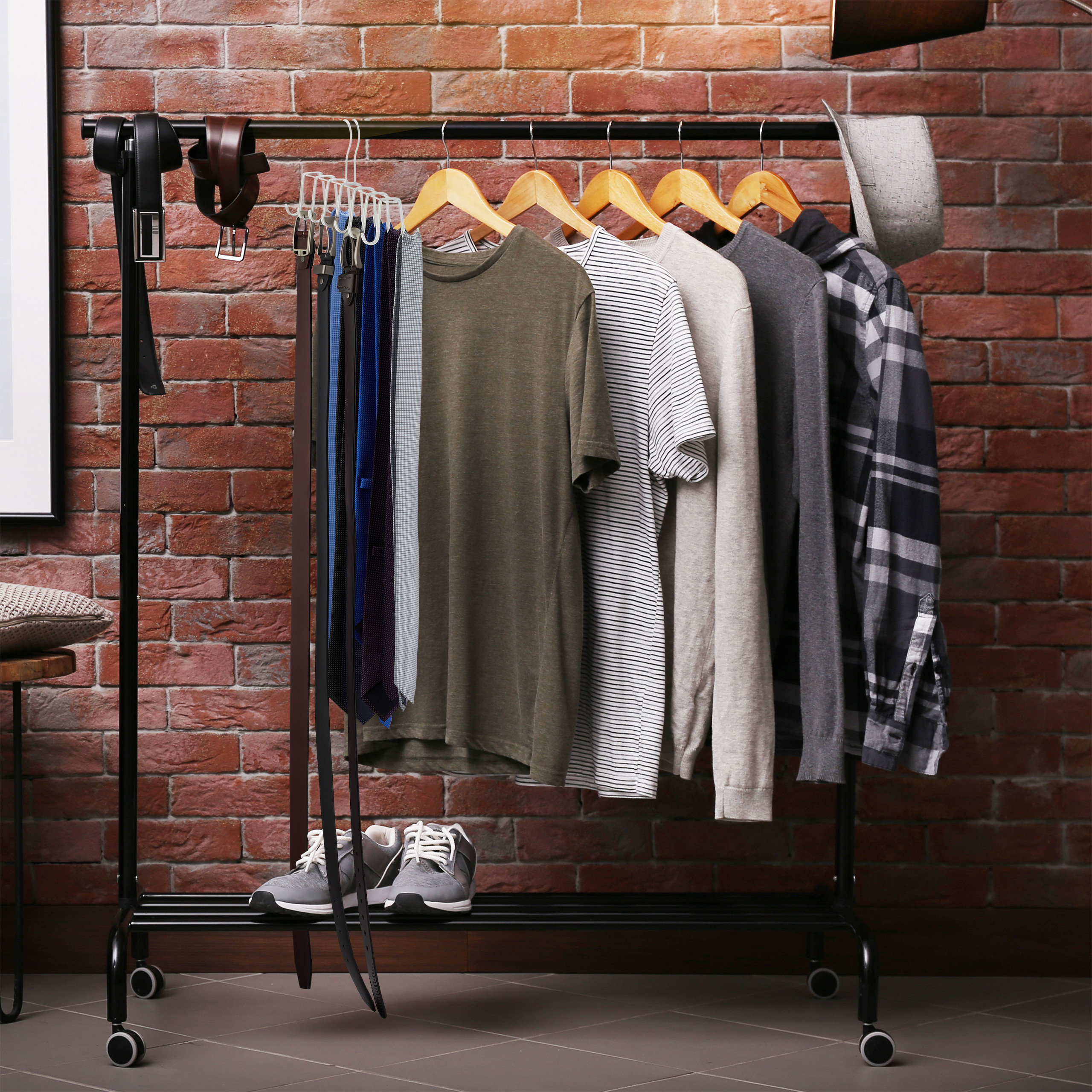 Įneškite tvarką į savo spintą su šia elegantiška ir funkcionalia diržų pakaba. Šis vietą taupantis sprendimas padės jums lengvai ir patogiai surūšiuoti įvairius priedus, tokius kaip šalikai, diržai ar kaklaraiščiai.