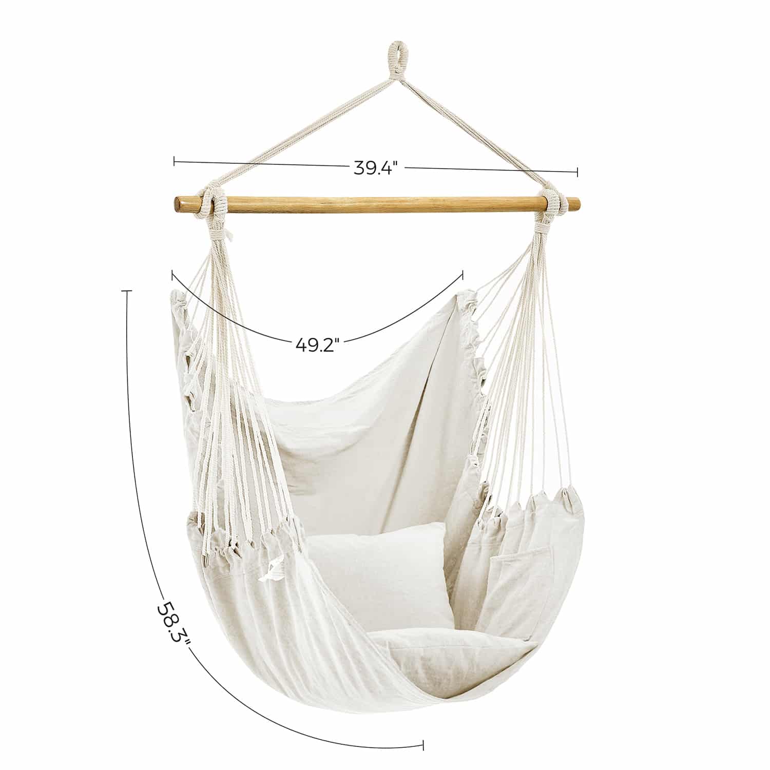 Pakabinama kėdė su 2 pagalvėlėmis ir metaline grandinėle, smėlio spalvos