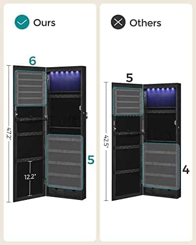 Grožio kasdienybė be kliūčių: dabar, kai papuošalai tvarkingai laikomi, jums nebereikia įnirtingai ieškoti pamestų auskarų ar atrišti susipainiojusių karolių ryte. Verčiau tiesiog išsirinkite derančius papuošalus iš šios universalios papuošalų spintelės ir prieš išeidami iš namų apžiūrėkite savo aprangą dideliame veidrodyje. Nuo šiol kiekvienas rytas bus nuostabus!