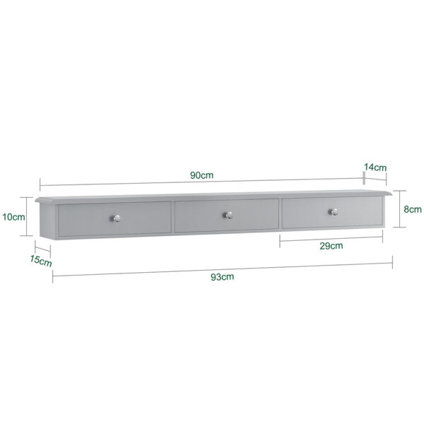 Pakabinama sieninė lentyna su stalčiais 93x15x10cm., pilkos/sidabrinės spalvos FRG43-L-HG