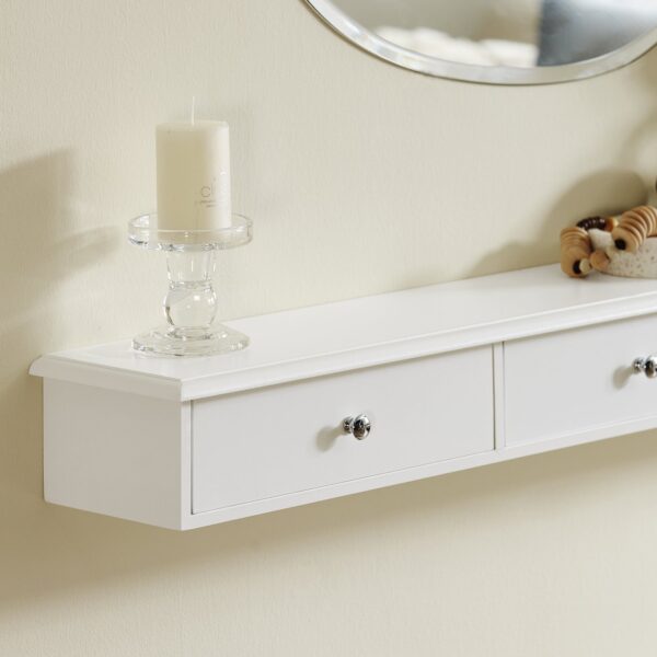 Pakabinama sieninė lentyna su stalčiais 94x15x10 cm, baltos/sidabrinės spalvos, yra puikus sprendimas efektyviam erdvės išnaudojimui jūsų namuose. Ši lentyna ne tik maksimaliai išnaudoja sienos plotą, bet ir atlaisvina grindų erdvę, suteikdama daugiau vietos jūsų interjere.