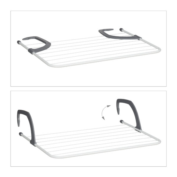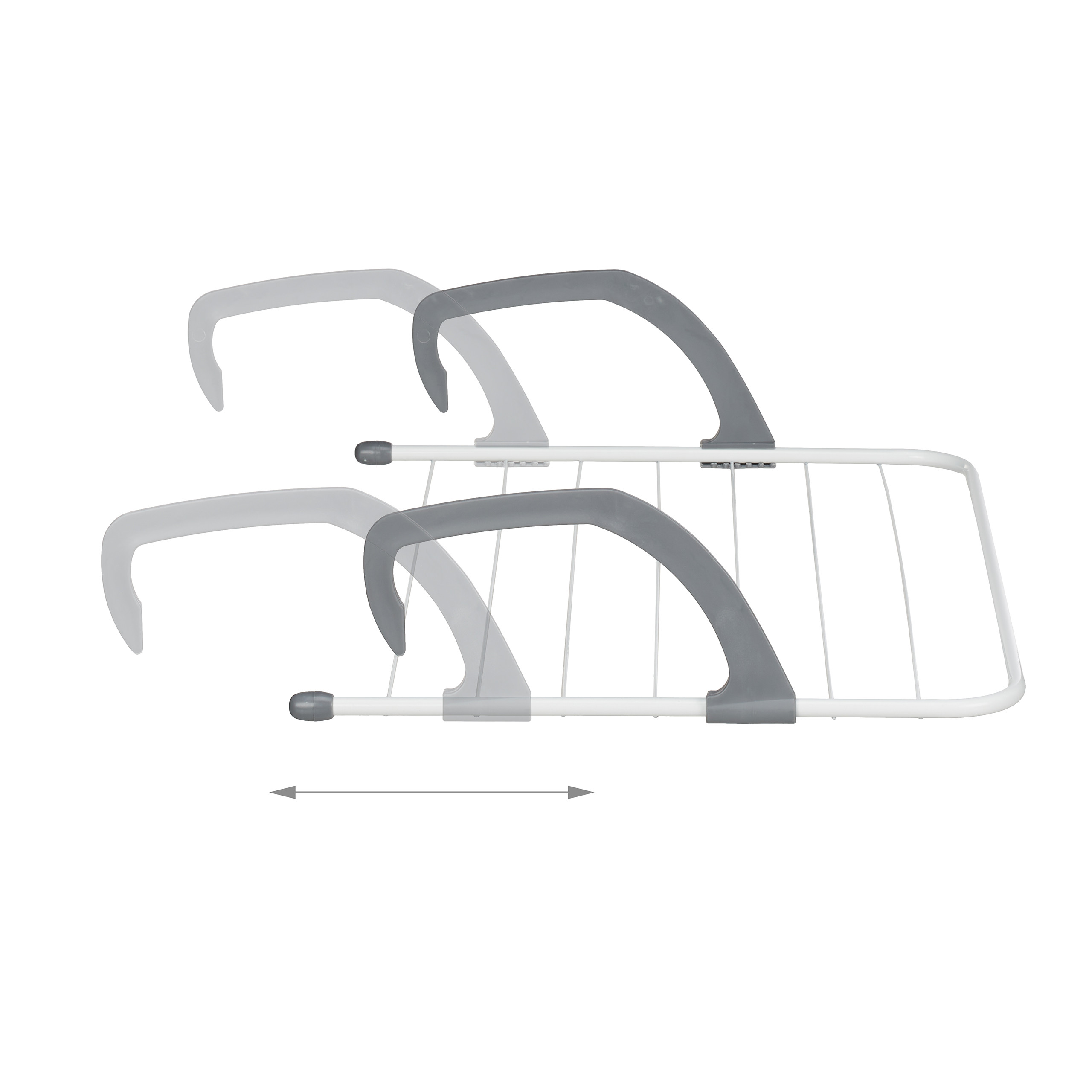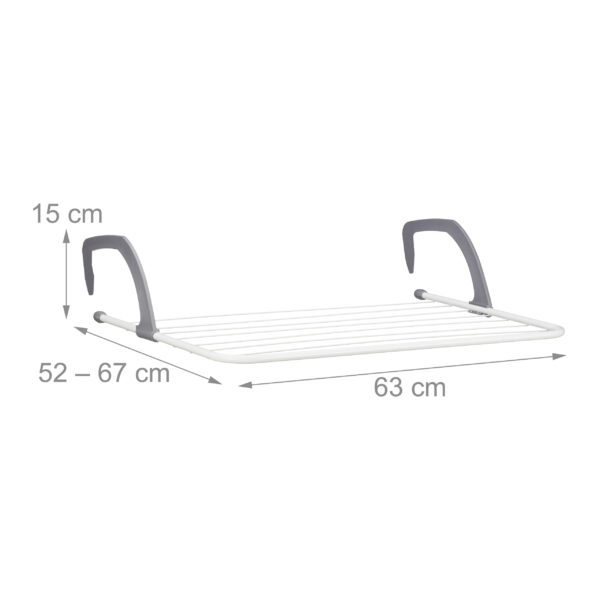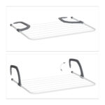 - Reguliuojamas laikiklis: Lengvai pritaikomas prie balkono turėklų, radiatoriaus ar dušo sienų.