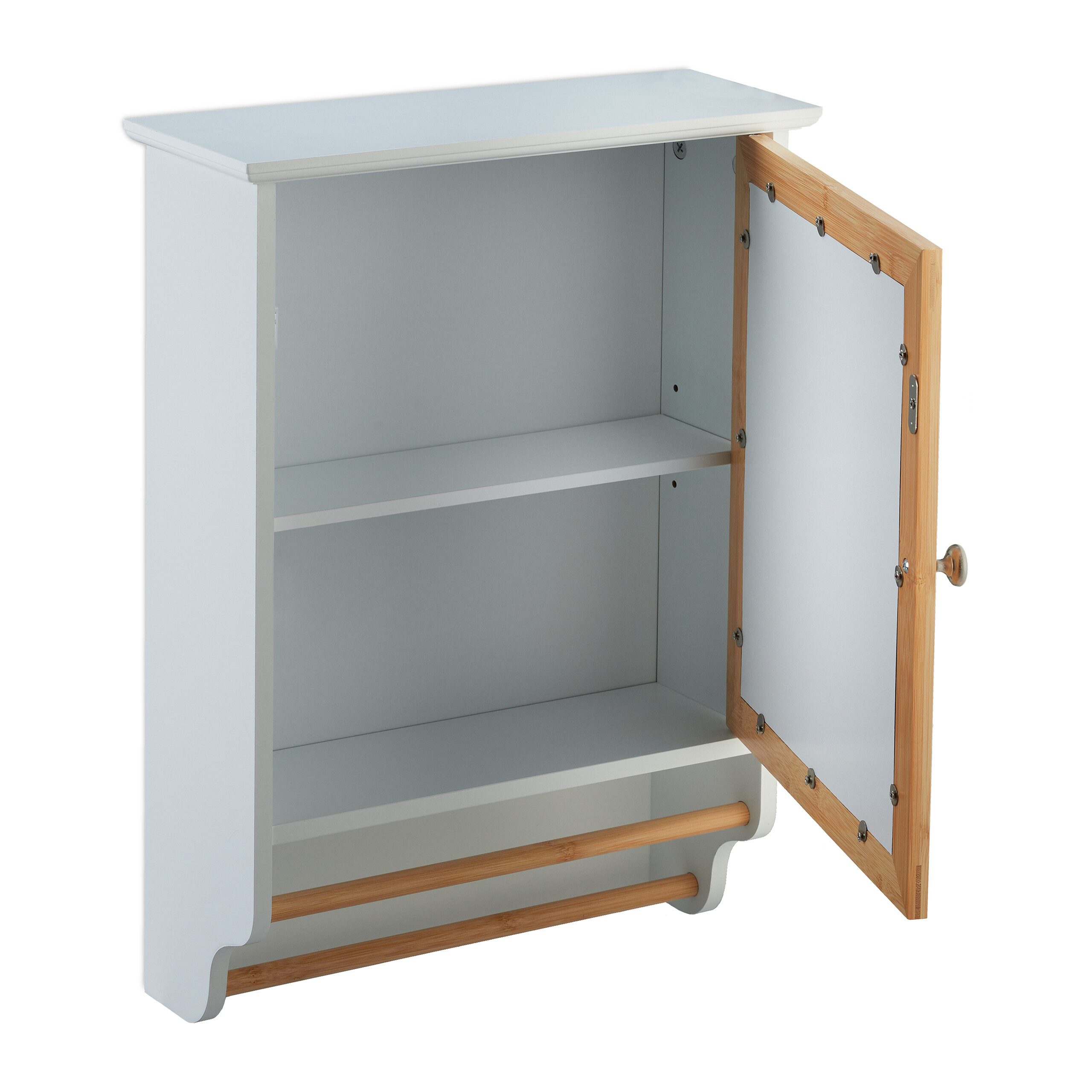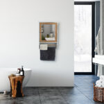 Pakabinama spintelė su veidrodžiu ir rankšluosčių laikikliu 55x40x14,5cm., šviesiai rudos/baltos spalvos