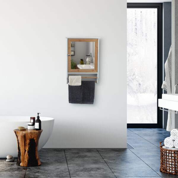 Pakabinama spintelė su veidrodžiu ir rankšluosčių laikikliu 55x40x14,5 cm