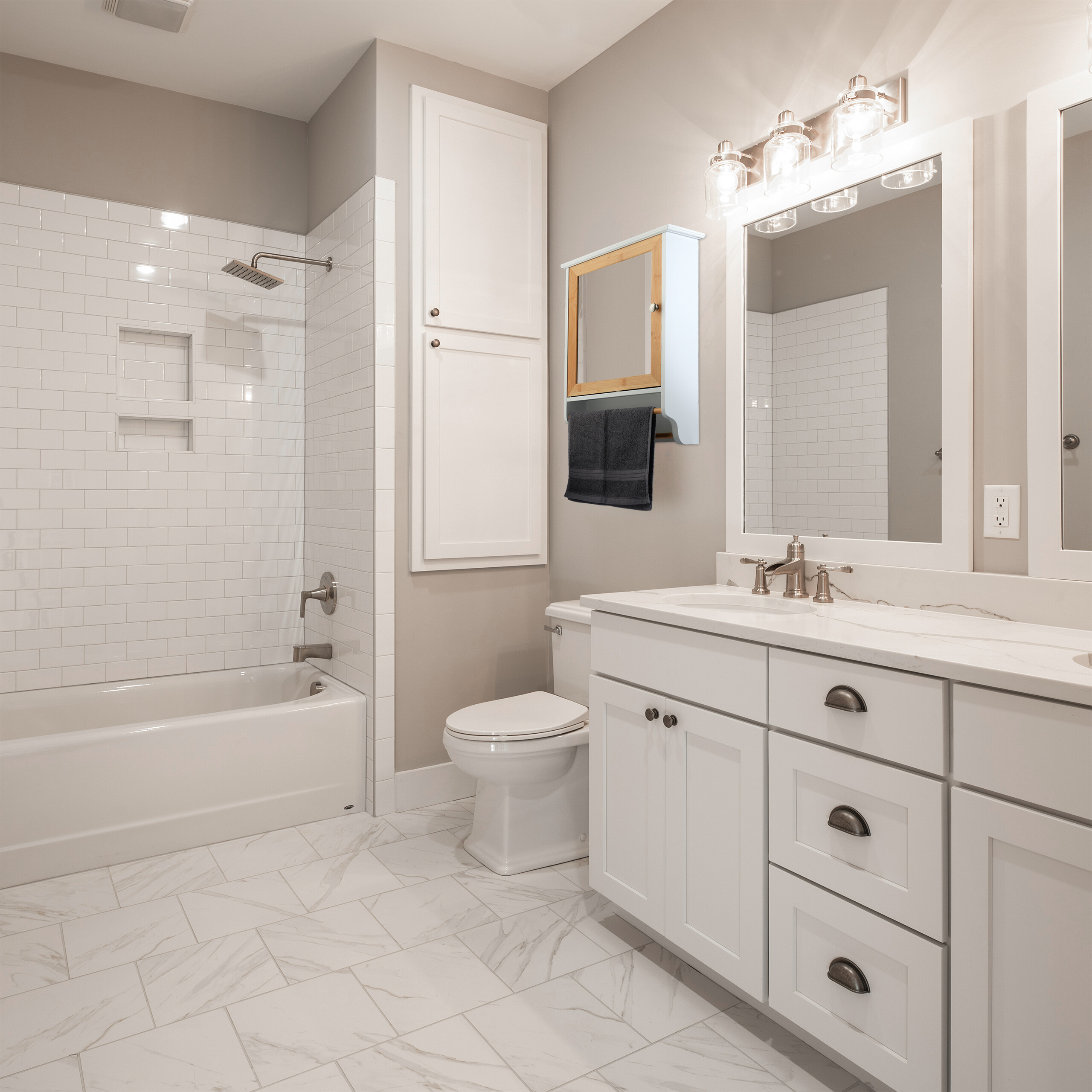 Stilingas dizainas: Šviesiai rudos ir baltos spalvos derinys su bambuko akcentais suteikia modernumo ir elegancijos jūsų vonios kambariui.