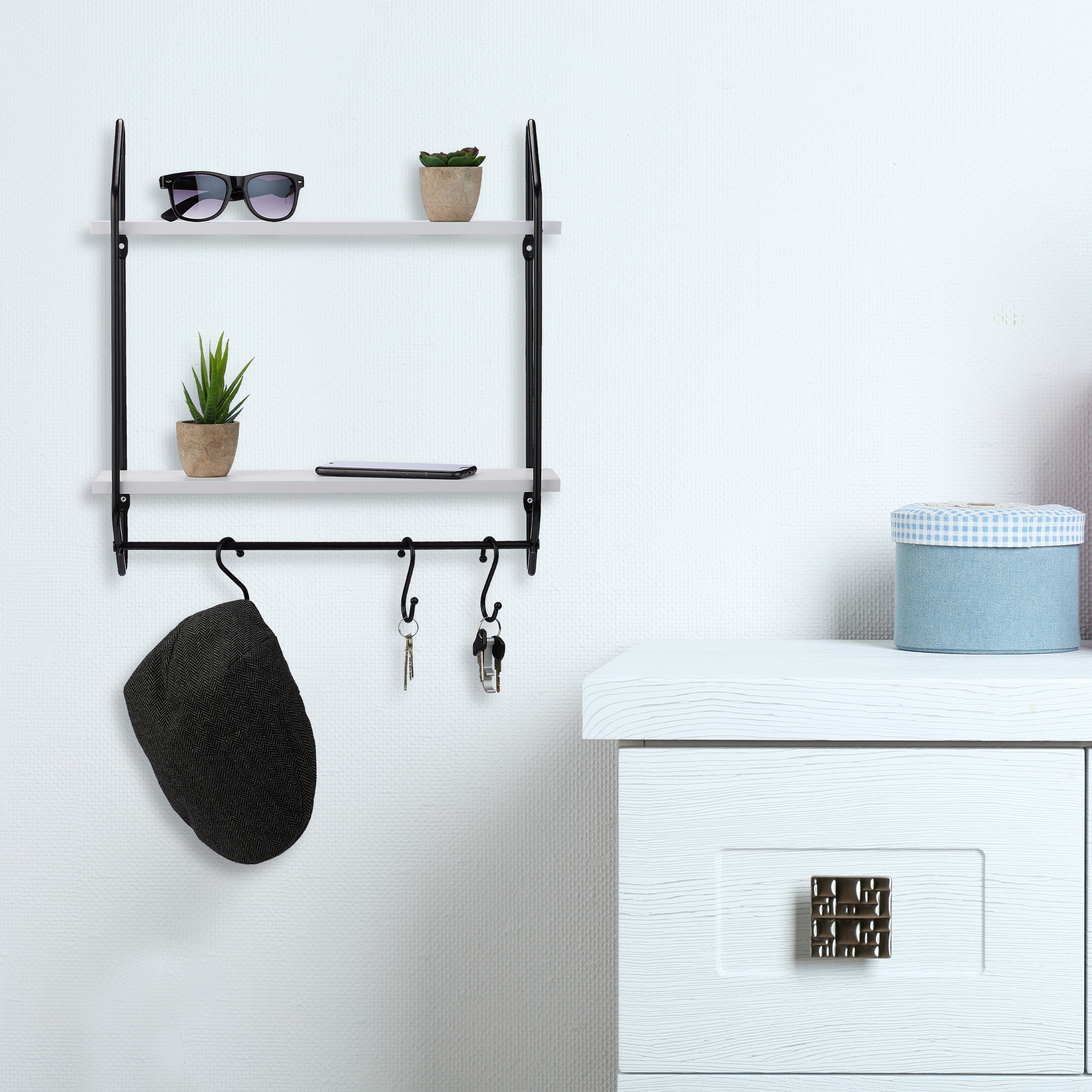 Pakabinama Virtuvės Lentyna 50x45x14,5 cm – Juodos/Baltos Spalvos