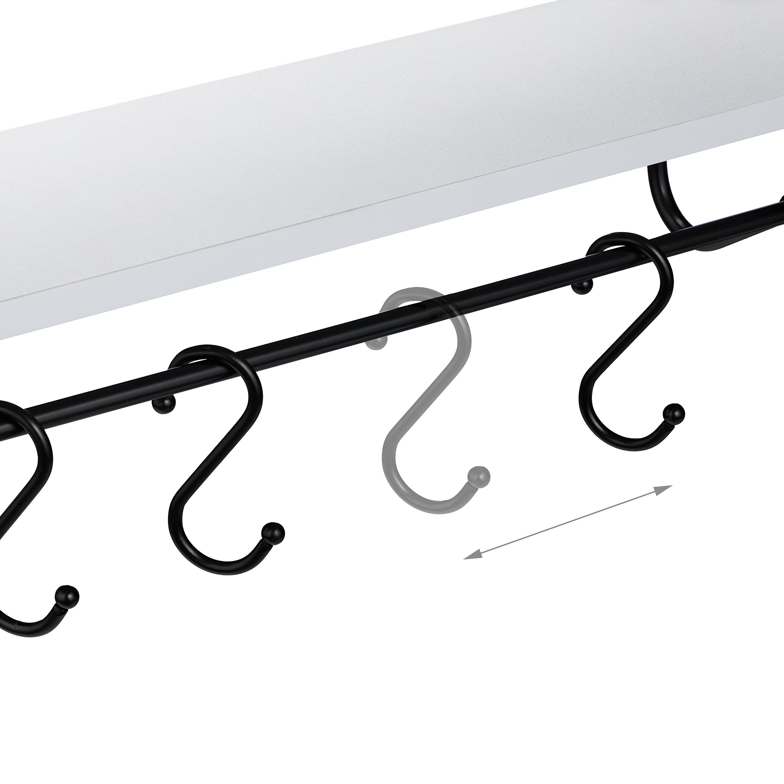 - Bėgelis Rankšluosčiams: Nuėmus kabliukus, bėgelis gali būti naudojamas rankšluosčiams kabinti.