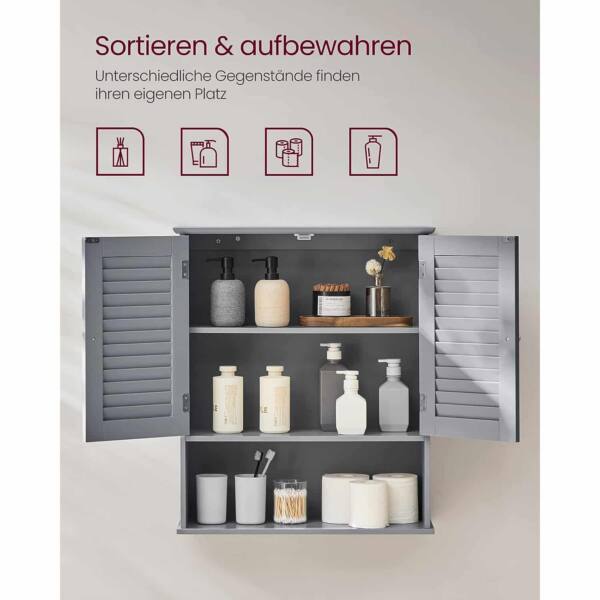Ši pakabinama vonios kambario spintelė su reguliuojama lentyna yra puikus pasirinkimas jūsų vonios kambariui. Jos elegantiška pilka spalva ir modernus dizainas puikiai derės prie bet kokio interjero.
