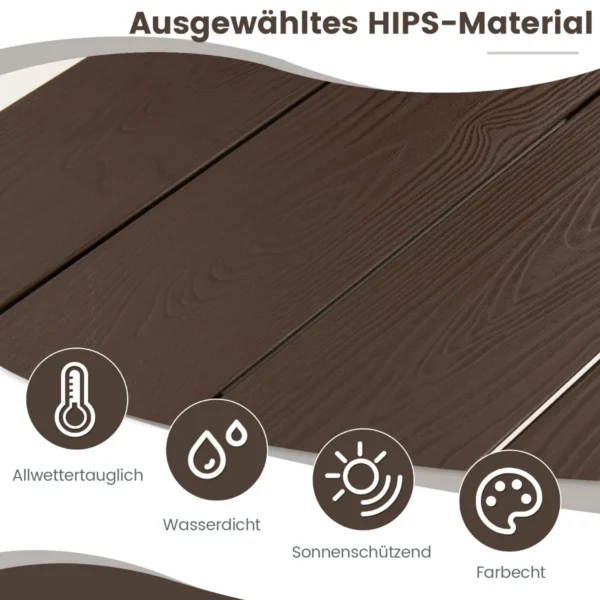 - HIPS medžiaga atspari oro sąlygoms, saulės poveikiui ir vandeniui.
