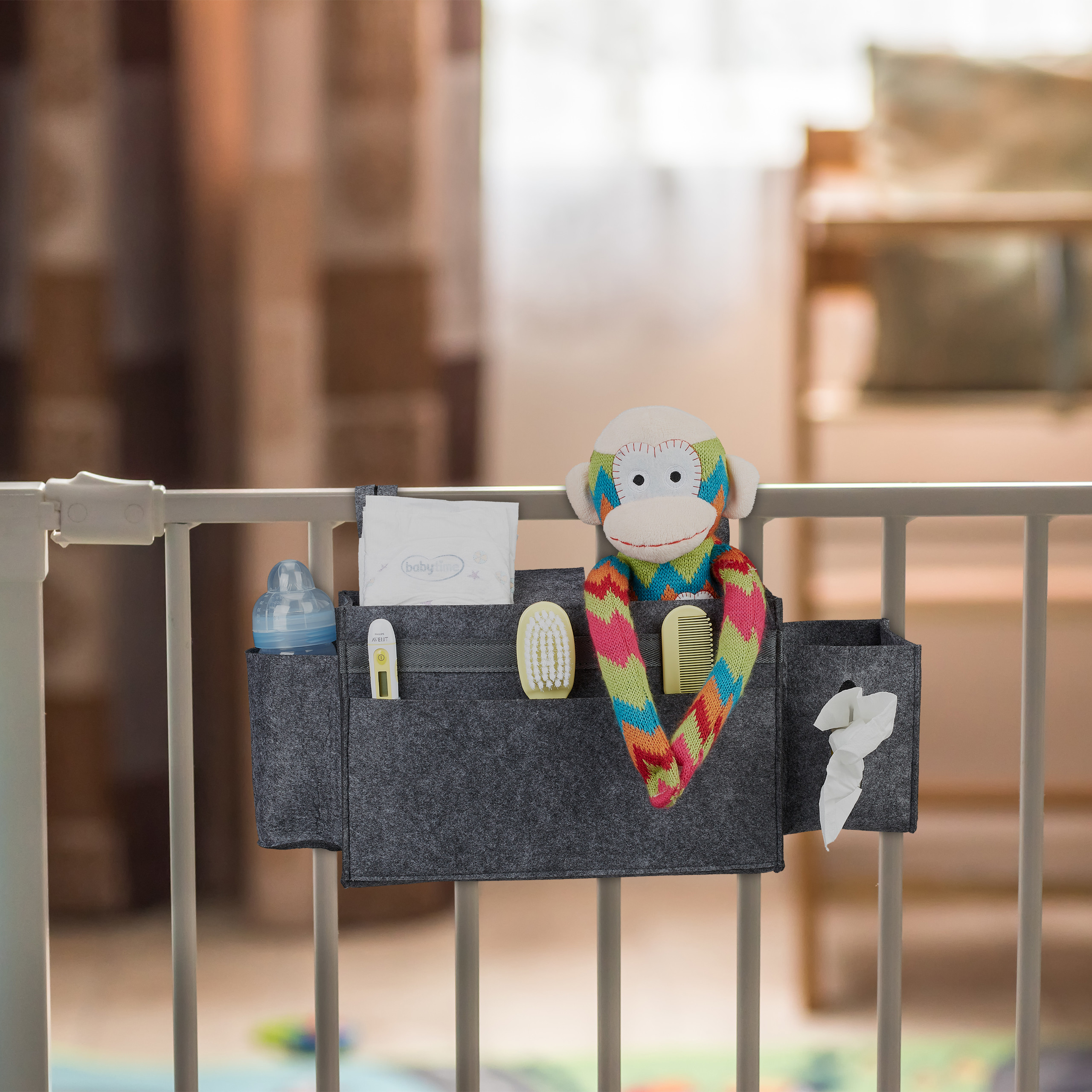 - Idealiai tinka kaip šoninės lovos dėtuvė sauskelnėms, buteliukams ir kitiems kūdikio reikmenims