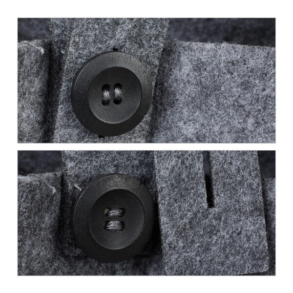 Šis universalus pakabinamas krepšys yra puikus sprendimas, siekiant sukurti papildomą vietą jūsų namuose. Pagamintas iš minkšto veltinio, jis ne tik stilingas, bet ir funkcionalus, todėl puikiai tinka įvairioms reikmėms. Jo elegantiška tamsiai pilka spalva dera prie bet kokio interjero.