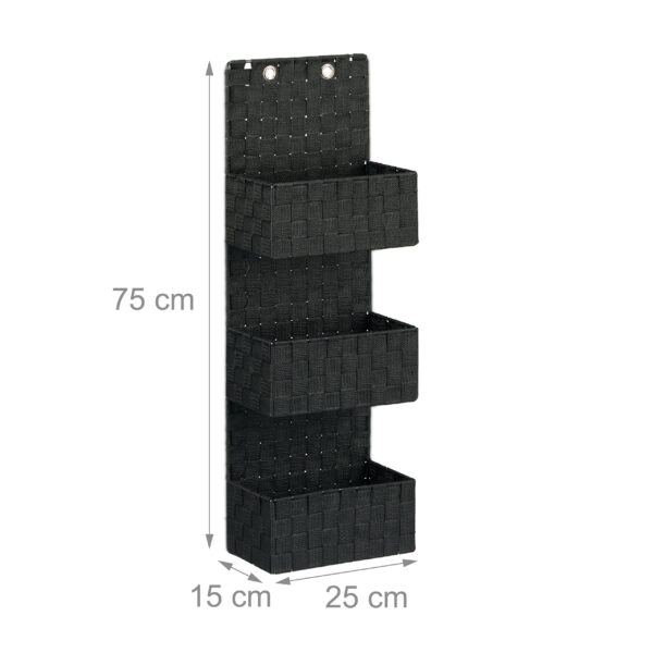 Ieškote praktiško ir stilingo būdo organizuoti savo erdvę? Mūsų pakabinamas organizatorius su 3 skyriais yra puikus pasirinkimas! Šis juodos spalvos organizatorius ne tik suteiks jūsų interjerui modernumo, bet ir padės tvarkingai laikyti įvairius daiktus.