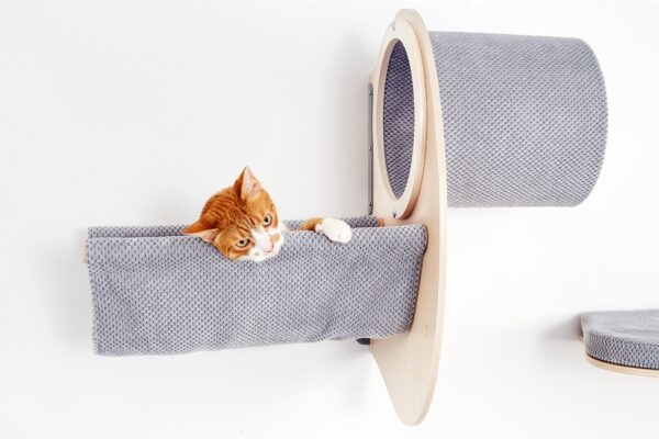CATWALK PLAY yra pakabinama vertikali žaidimų ir poilsio zona, skirta linksminti jūsų katę valandų valandas. Jį sudaro tunelis, kuris yra puiki slėptuvė, ir hamakas, skirtas atsipalaiduoti, kai jiems reikia atsikvėpti prieš kitą linksmybių ir žaidimų etapą.