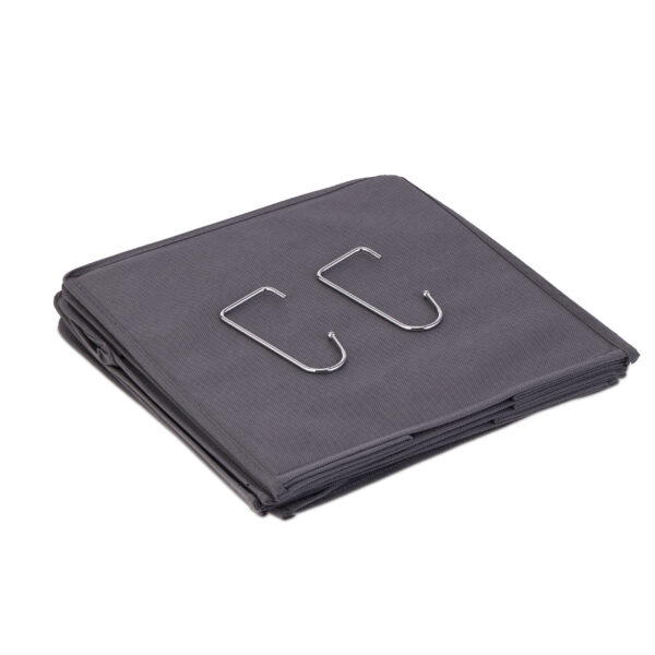 - Paprastas Montavimas: Lengvai pakabinama naudojant du metalinius kabliukus, kurie tvirtai laikosi ant drabužių kabyklos.
