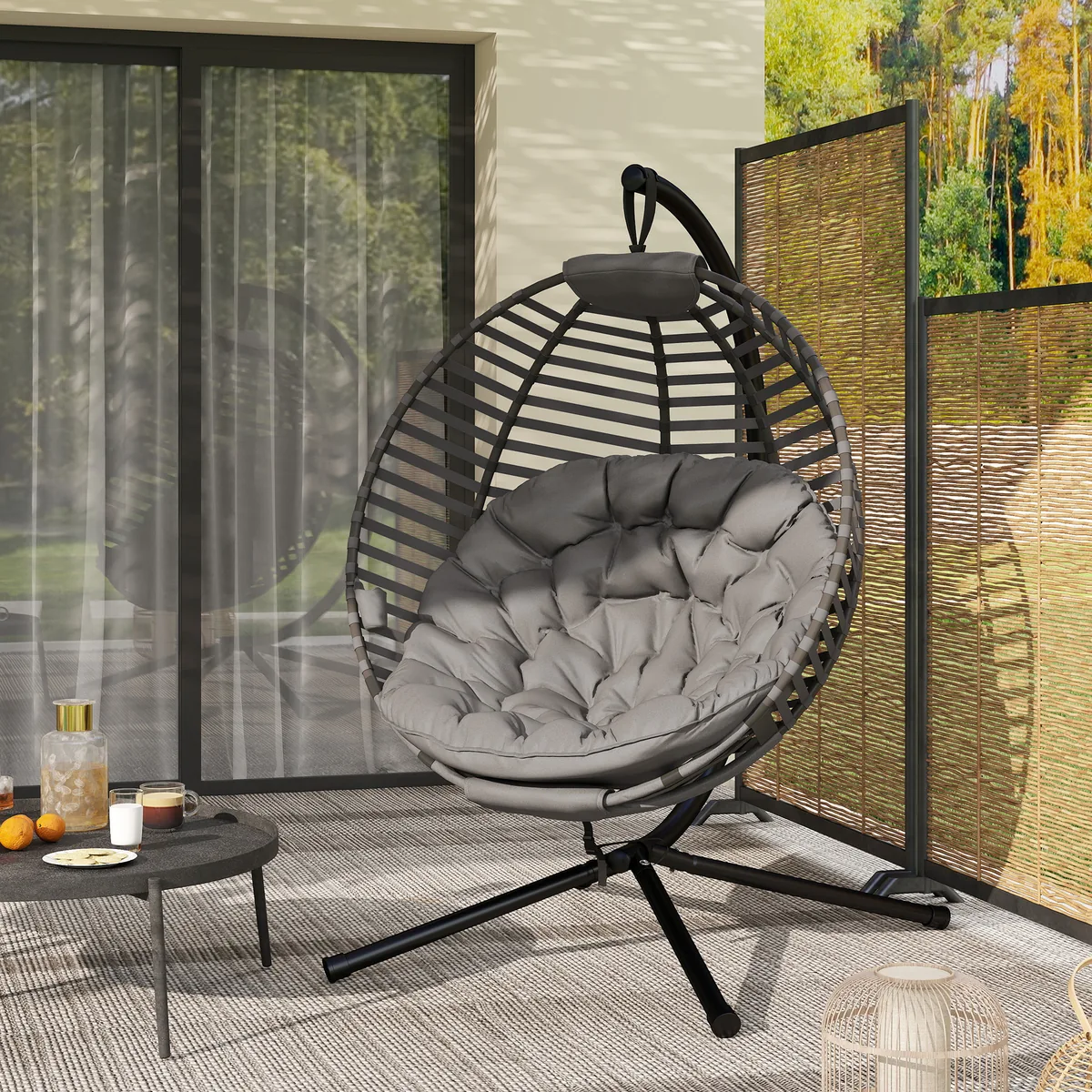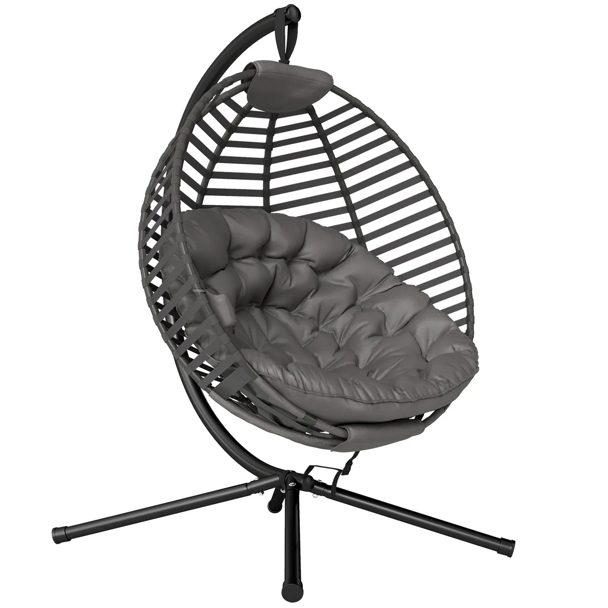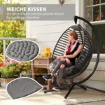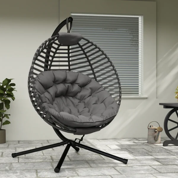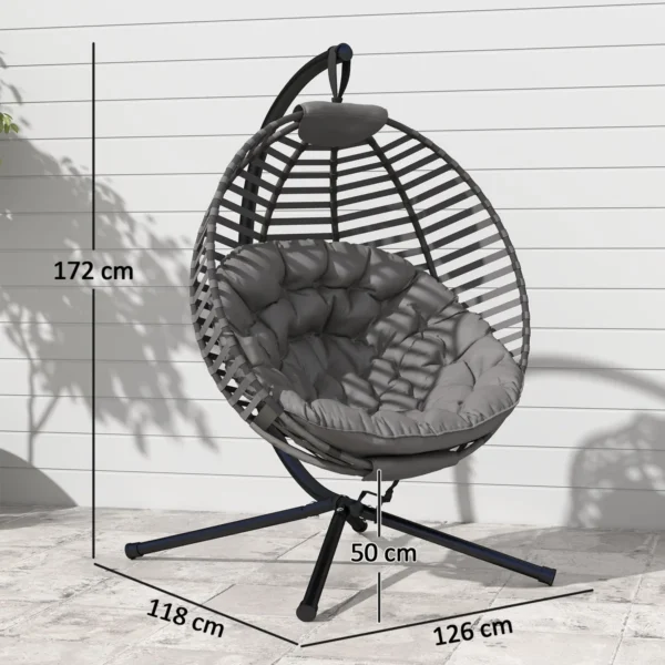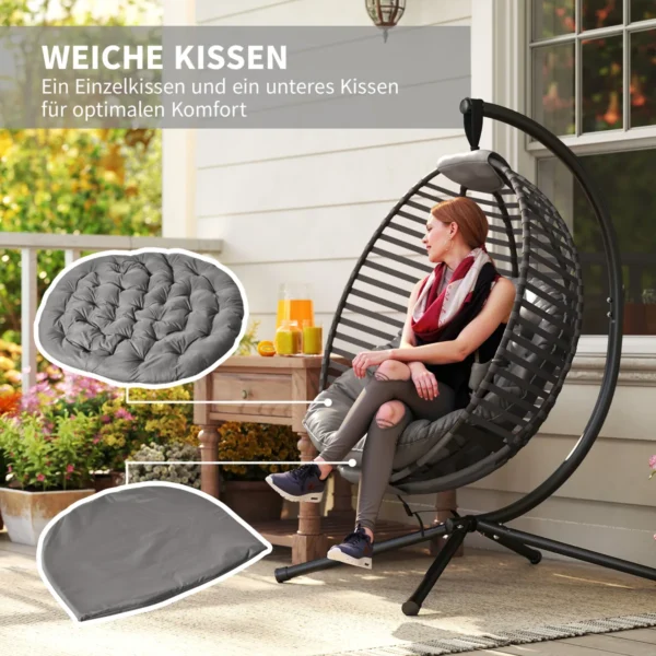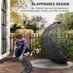Praleiskite dieną plūduriuodami ant debesų šioje pakabinamoje Outsunny kėdėje! Išlenktas atlošas, erdvi sėdynė ir minkšta pagalvėlė suteikia itin patogią sėdėjimo patirtį. Rėmas pagamintas iš plieno ir gali išlaikyti iki 120 kg svorį, todėl galite jį naudoti be rūpesčių. Sulankstomas sėdynės krepšys leidžia sutaupyti vietos ir patogiai laikyti. Pagyvinkite savo vidaus ar lauko erdvę šiuo išskirtinio dizaino foteliu.