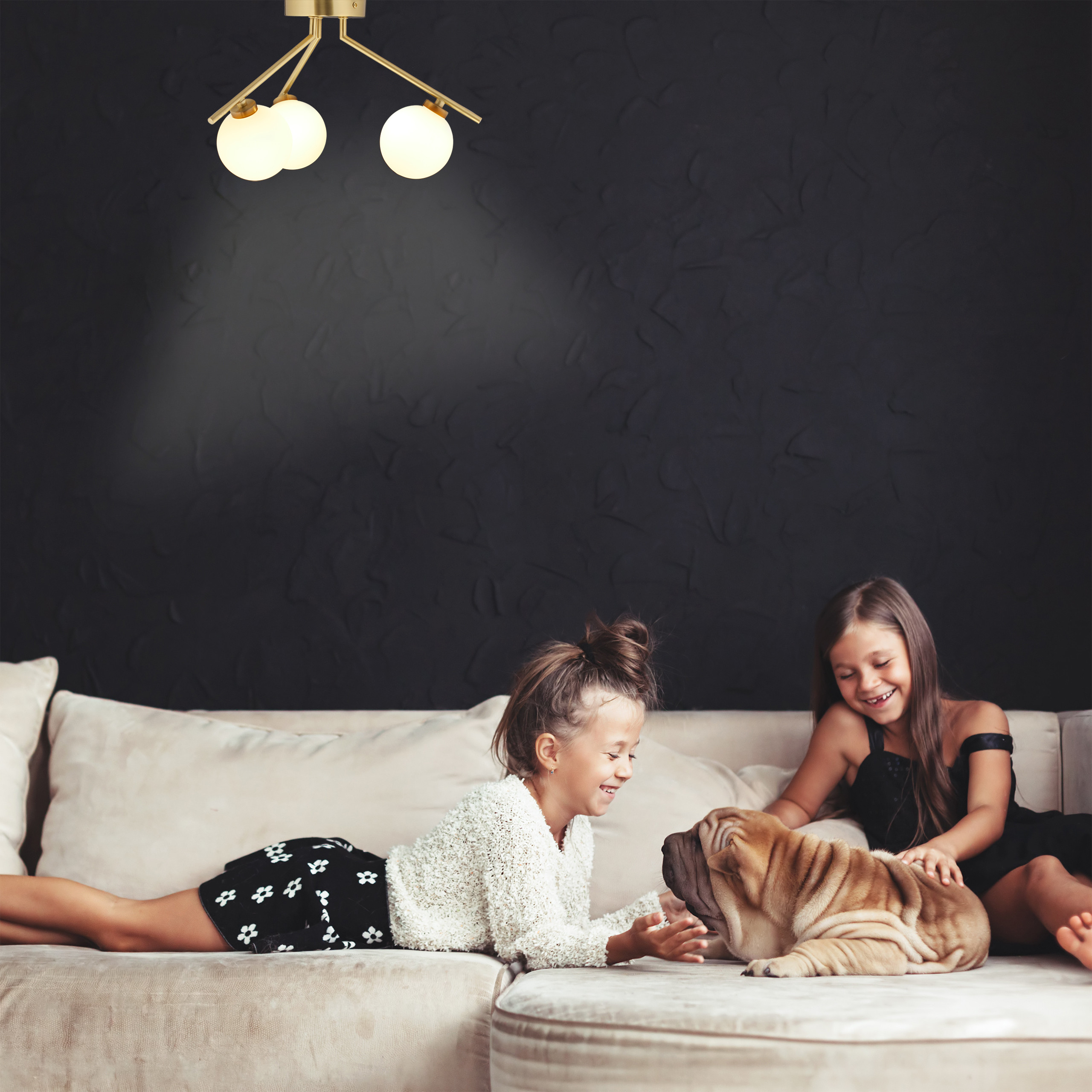Šviestuvas puikiai tinka miegamajam arba svetainės zonai, kur jis skleis malonią ir šiltą šviesą, sukurdamas jaukią atmosferą. Auksinės spalvos geležinis rėmas kartu su opaliniu stiklu sudaro harmoningą ir estetišką derinį, kuris traukia akį tiek įjungtas, tiek išjungtas.