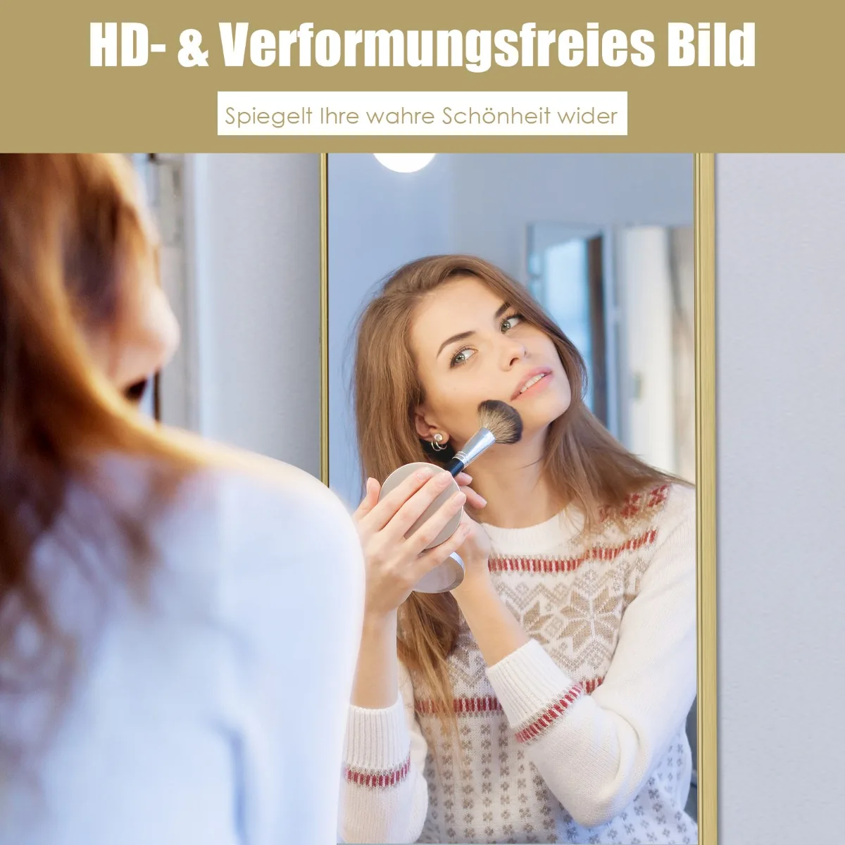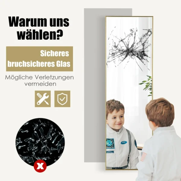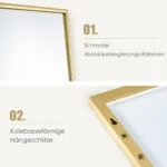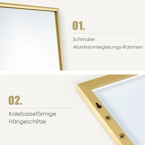 Pakabinamas veidrodis 37x2x120cm, auksinės spalvos, suteikia funkcionalų sprendimą, kai norite taupyti vietą. Šis ilgis veidrodžio leidžia apžvelgti visą kūno atvaizdą, o du pakabinimo būdai suteikia galimybę pritaikyti veidrodį pagal poreikį.