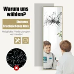 - Veidrodžio stiklas dūžtančias apsaugo sprogimui atspari plėvelė.
