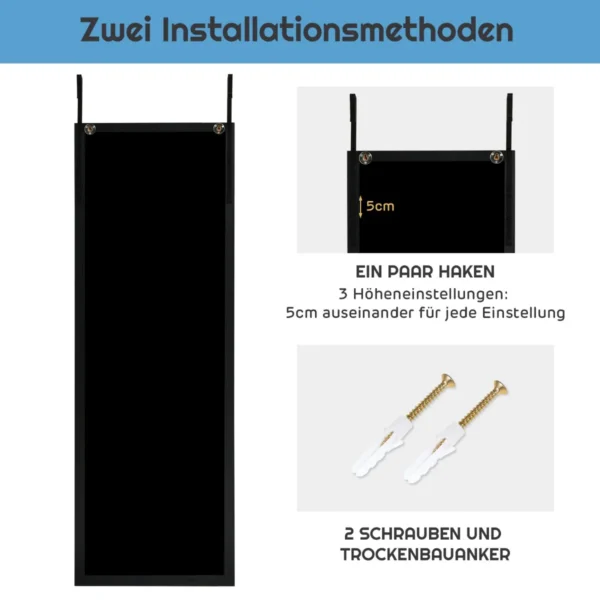 - Galimybė kabinti ant sienos su varžtais arba ant durų su kabliukais.