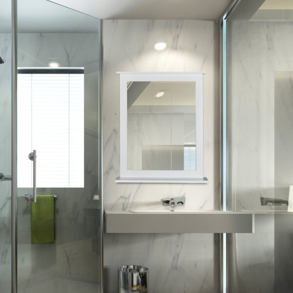 - Universalus dizainas: Veidrodis puikiai tinka vonios kambariui, koridoriui ar svetainės interjerui, suteikdamas erdvei šviesos ir erdvumo pojūtį.