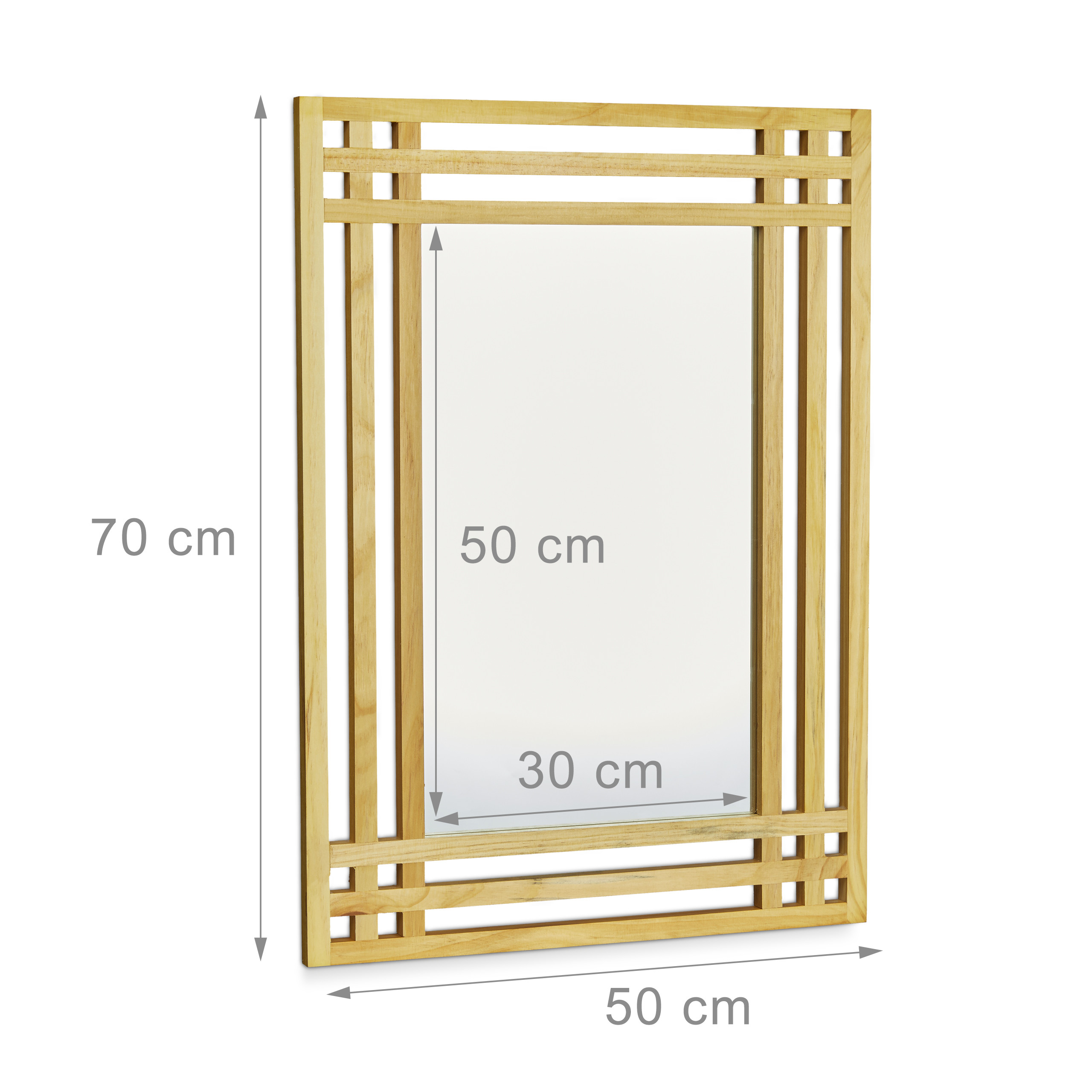 - Funkcionalumas: Medinis grotelių rėmas ne tik puošia, bet ir suteikia veidrodžiui išskirtinumo.
